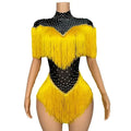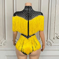 Ropa de Drag Queen, disfraz sexy de Gogo, mono amarillo con flecos y diamantes de imitación para mujer, atuendo para fiesta de DJ y discoteca, ropa rave