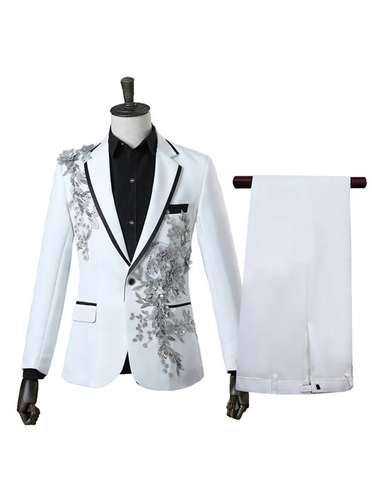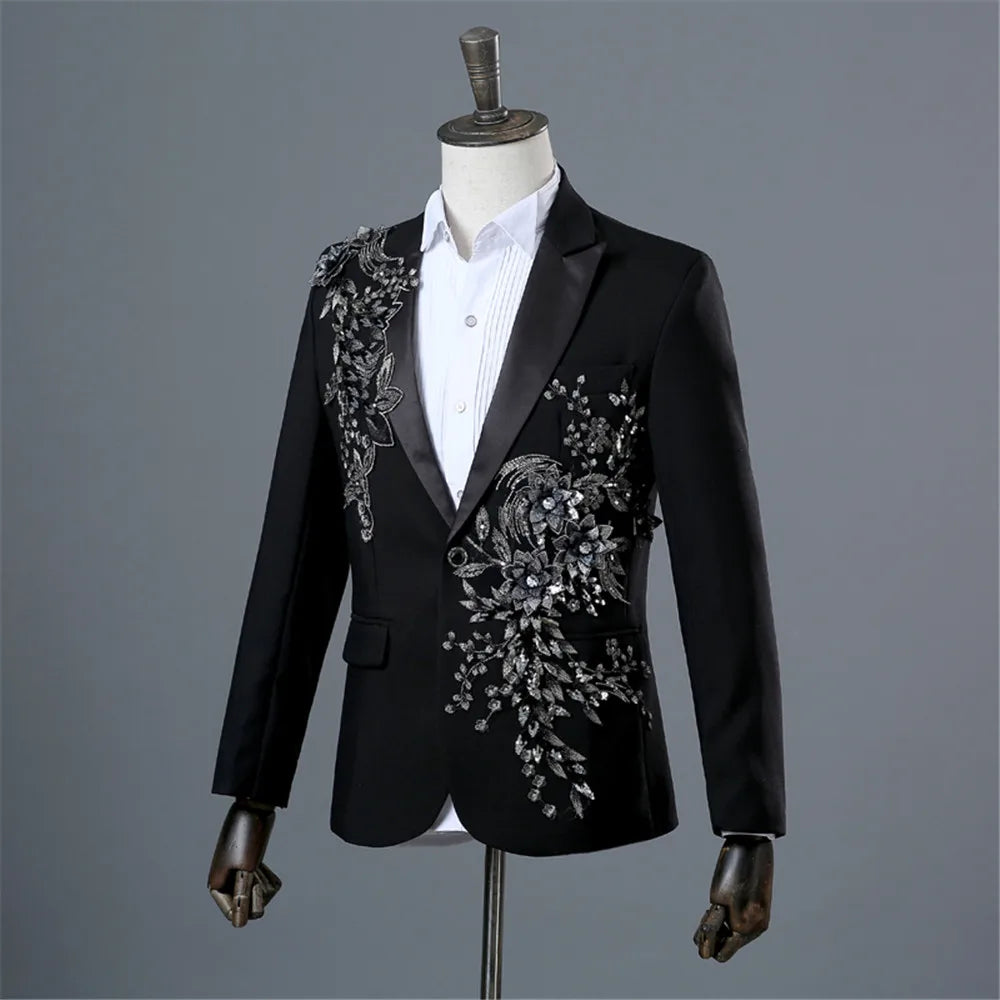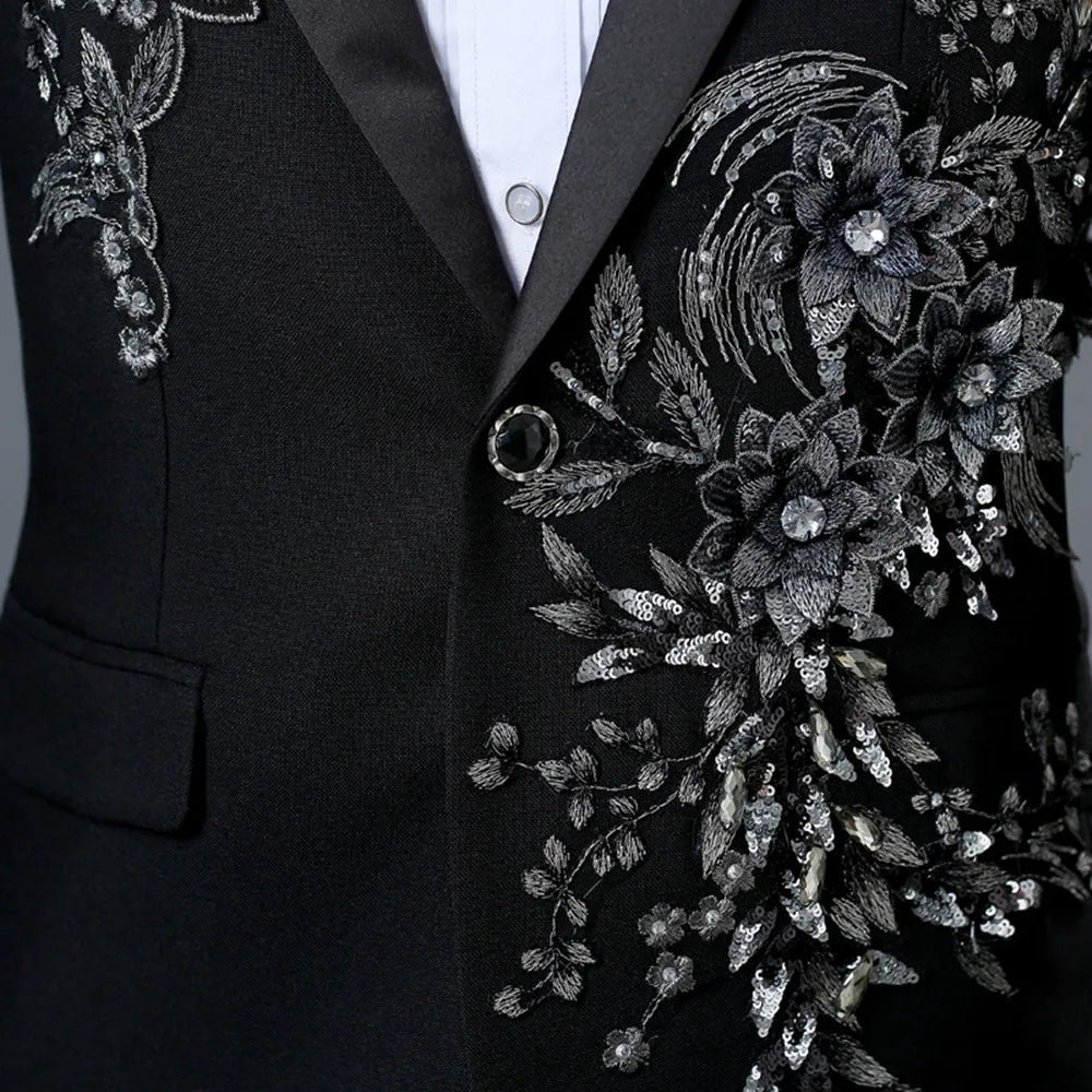 Elegante traje de dos piezas con apliques para hombre, ideal para banquete de boda, baile de graduación, Navidad, blazer.