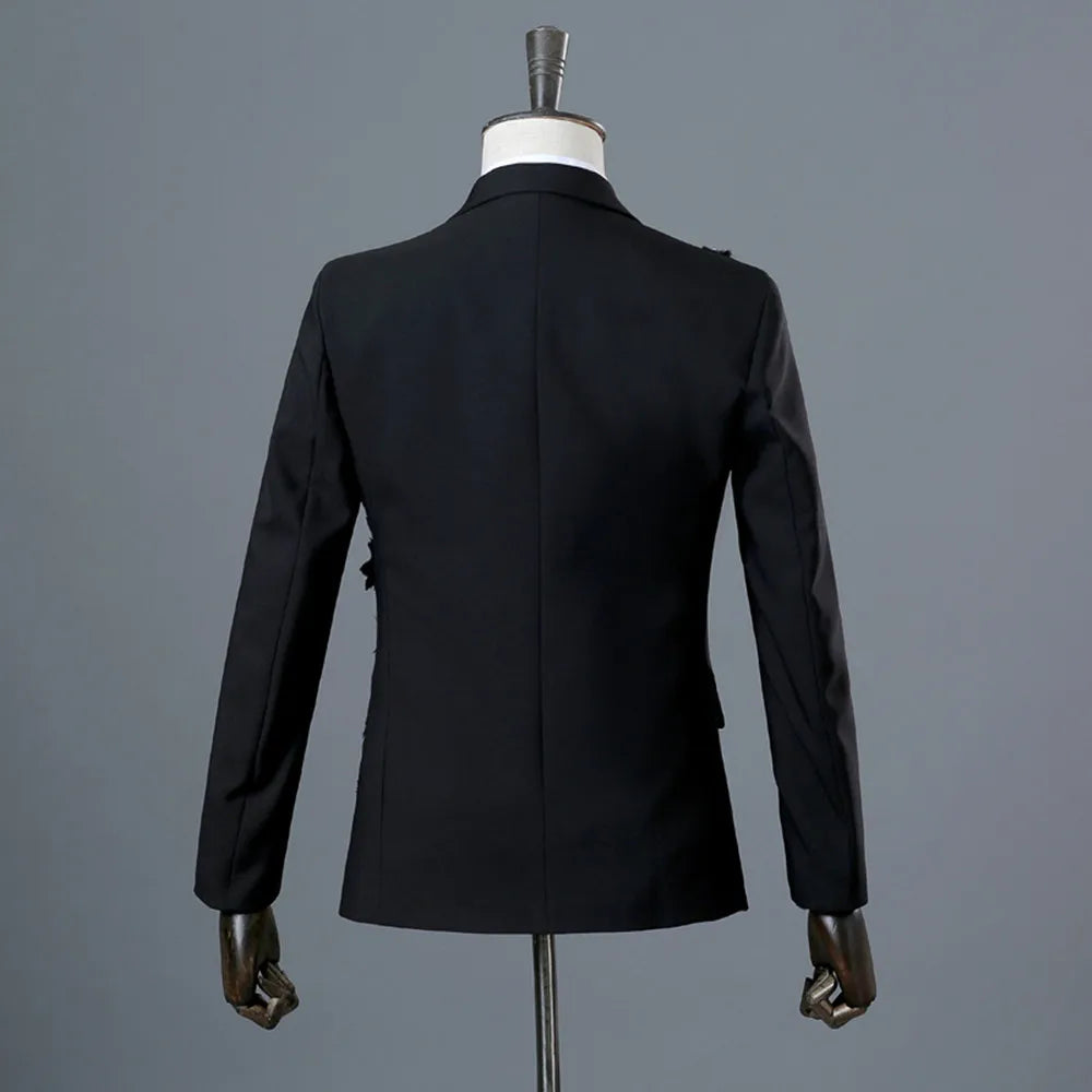 Luce elegante y sofisticado con este elegante traje de dos piezas para hombre, perfecto para diversas ocasiones especiales. Ya sea que asistas a una boda, organices un banquete, bailes de graduación o participes en un evento navideño, este traje sin duda te hará destacar. El blazer con intrincados apliques añade un toque de lujo y estilo, convirtiéndote en el centro de atención. Realza tu atuendo con este elegante y único traje para hombre, diseñado para mostrar tu personalidad y encanto en cualquier evento formal.