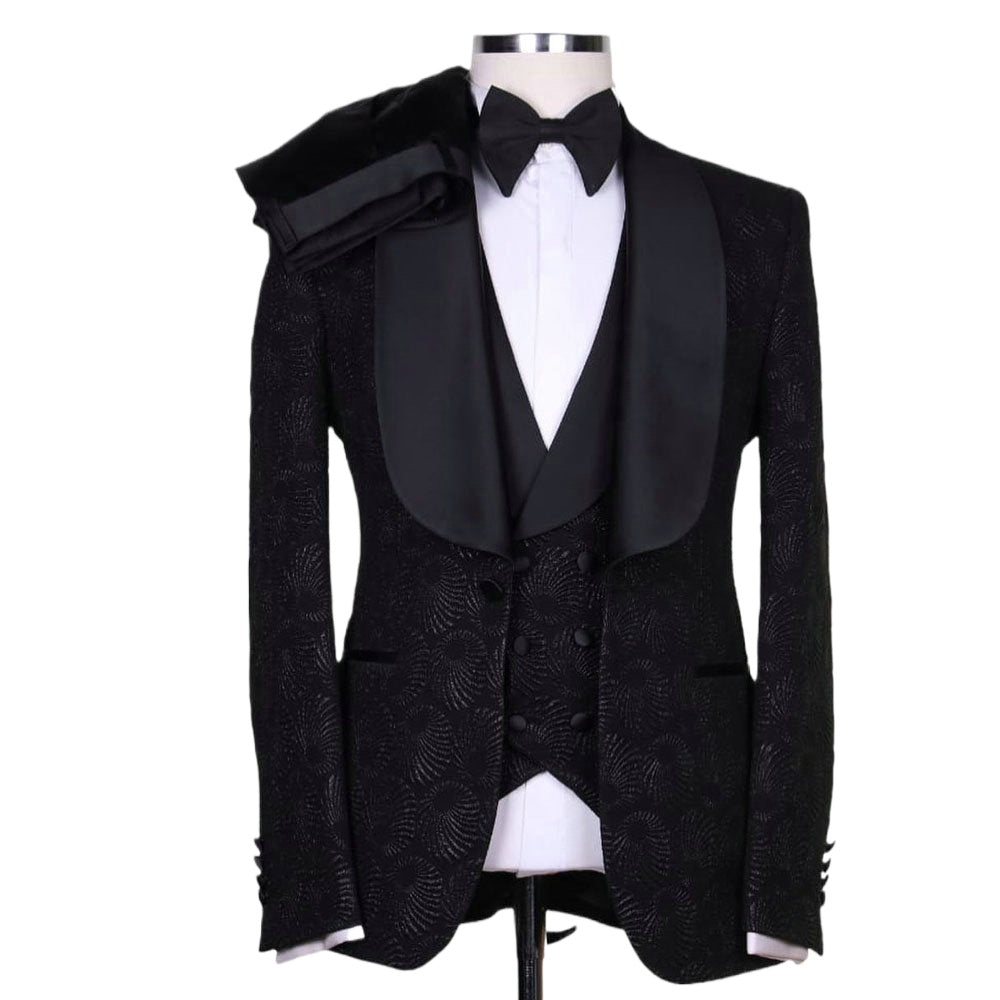 Traje elegante de tres piezas para hombre, para fiesta formal de noche, tejido jacquard (chaqueta, chaleco y pantalones)