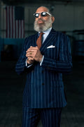 Sumérgete en la sofisticación con nuestro elegante traje de boda para caballero, diseñado para el novio con estilo y el cantante de fiesta. Este impactante esmoquin de tres piezas presenta un clásico estampado de rayas que irradia encanto y refinamiento. Hecho a medida para garantizar un ajuste perfecto, este conjunto incluye un abrigo de hermosa confección, un chaleco a juego y un pantalón a medida, lo que lo convierte en la opción ideal para bodas y otros eventos formales. Con su elegante diseño y su confección de calidad, este traje no solo es un éxito de ventas, sino también una prenda atemporal para cualquier armario. Destaca en tu día especial y causa una impresión imborrable con este exquisito traje.