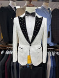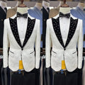 Elegant Men Suits Beading 2 Pieces Set Peaked Lapel Jacket Jacquard Blazer Rhinestone One Button Groom Customized Coat Pants