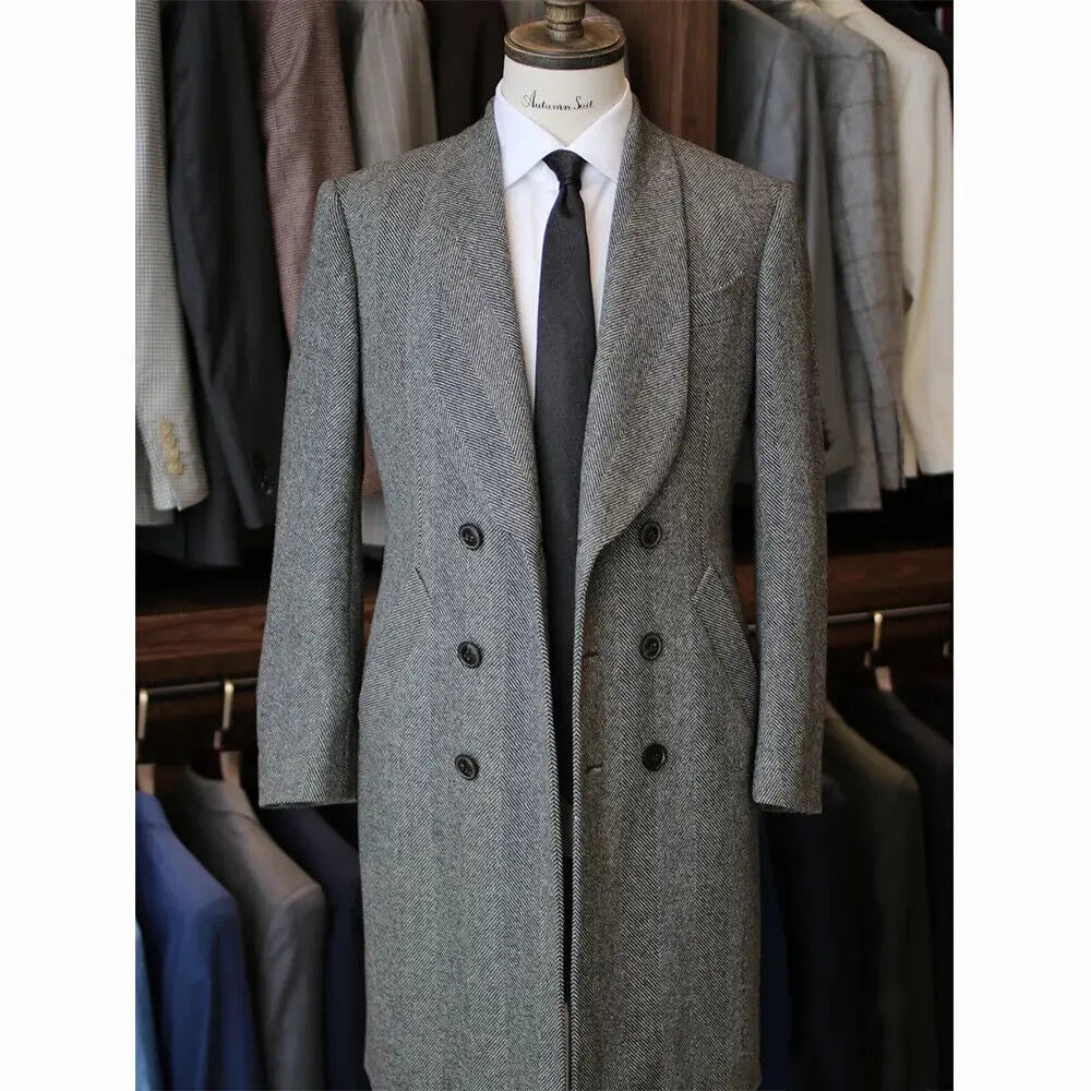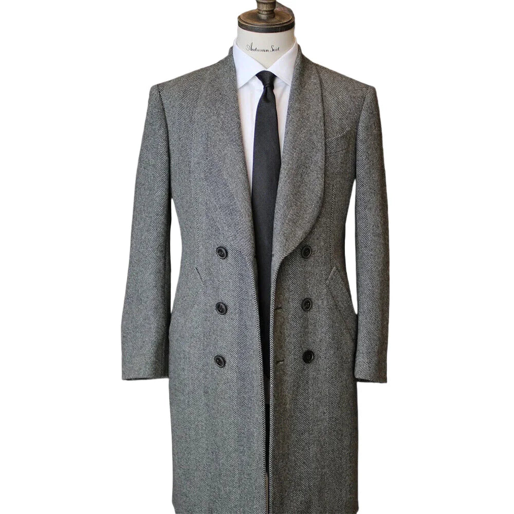 Elegant Men's Overcoat Herringbone Shawl Lapel Tailor-Made Windbreaker One Piece Double Breasted Warm Customized Overgarment