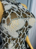 Haz una entrada memorable con este cautivador conjunto de vestido para mujer. Con elegantes adornos de perlas y pedrería, la elegante falda corta se combina con guantes de malla a juego, creando un efecto sexy y transparente, perfecto para eventos nocturnos, graduaciones, cumpleaños y sesiones de fotos. Su elegante diseño combina sofisticación y encanto, lo que lo convierte en la opción ideal para quienes buscan un atuendo de fiesta espectacular.