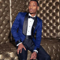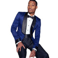 Elegante traje de boda azul real para hombre, cuello chal, dos piezas, pantalones acampanados, esmoquin para hombre, traje de ocasión de alta calidad hecho a medida.