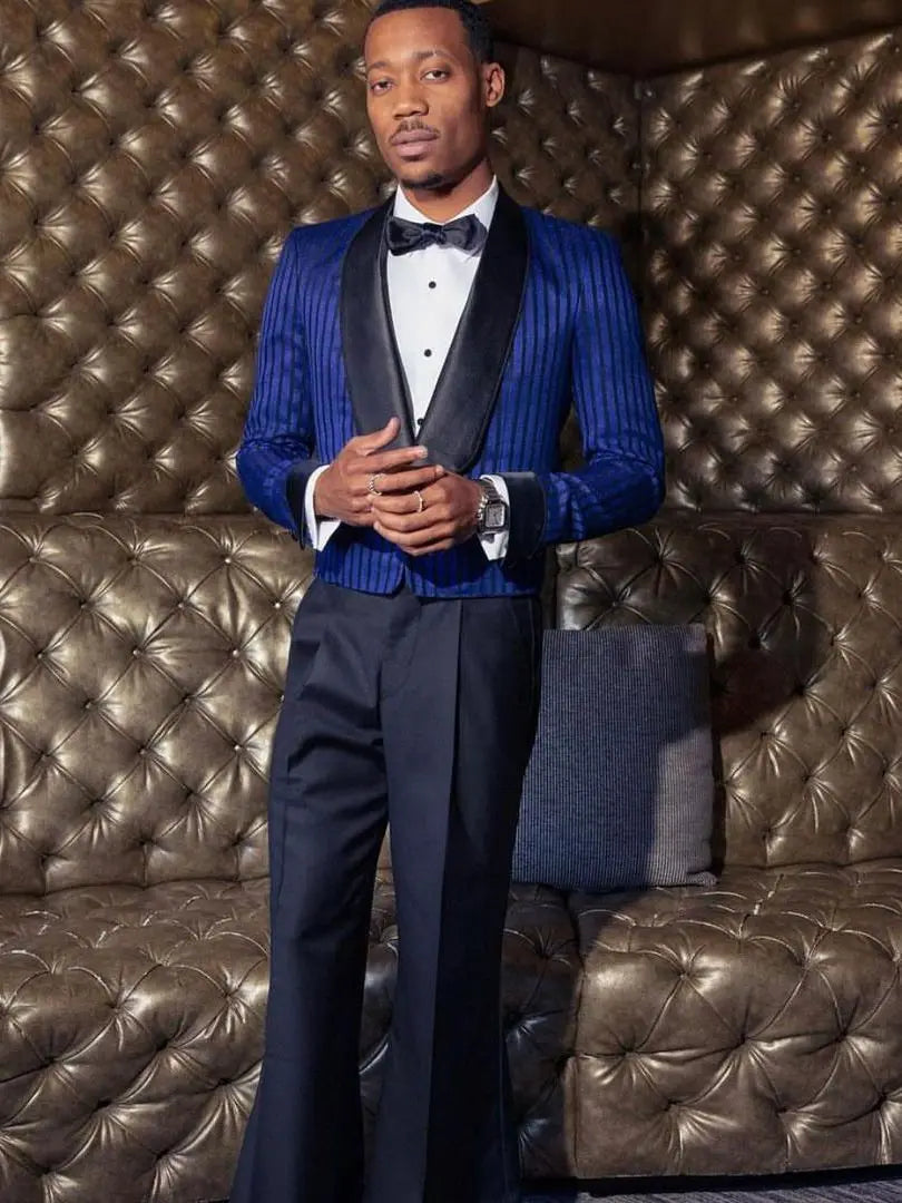 Adopte la sofisticación con nuestros elegantes trajes de boda azul rey para hombre, diseñados para destacar en su día especial. Este exquisito esmoquin de dos piezas presenta un elegante cuello chal y pantalones acampanados, combinando un estilo moderno con la elegancia clásica. Confeccionado con materiales de alta calidad, este traje garantiza comodidad y durabilidad, lo que lo hace perfecto para bodas y otras ocasiones formales. El vibrante tono azul rey añade un toque de lujo, haciéndole destacar entre la multitud. Experimente la combinación perfecta de estilo y calidad con este traje a medida, diseñado para realzar su vestuario formal.