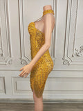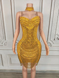 Elegant Women Golden Full Pearls High-end Evening Dress Birthday Party Photo Shoot Wear Festival Celebrate Outfit