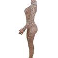 Mono de malla con grandes perlas y piedras plateadas brillantes para fiesta de graduación, disfraz de cantante, para cumpleaños y celebraciones nocturnas.