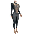 Fancy Rhinestone Spandex Tight Fitting Sparkly Jumpsuit Nightclub Stage Performance Dancewear Sexy Women Bar Party Outfit