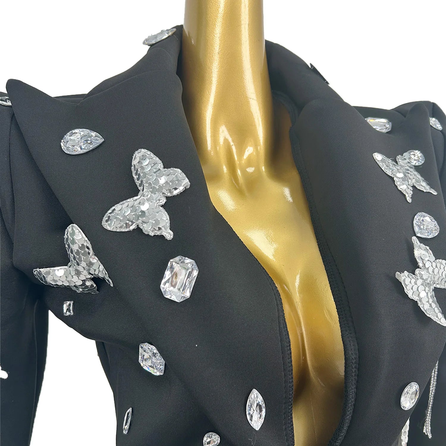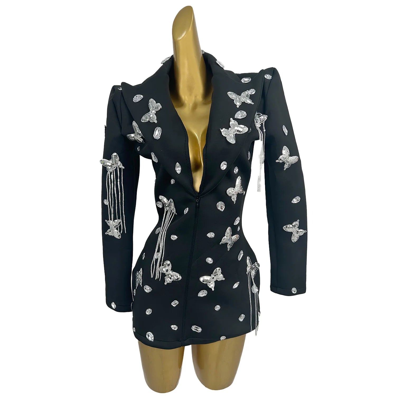 Elevate your performance and command every spotlight with the Fashion Butterfly Crystal Dress — a dramatic, sparkle-forward black dress crafted for club nights, stage performances, drag shows, birthday celebrations, and festival appearances. This piece combines bold silhouette design with intricate crystal embellishment and butterfly-inspired accents to create movement, glamour, and visual impact from every angle.