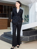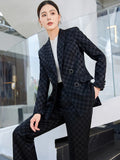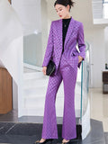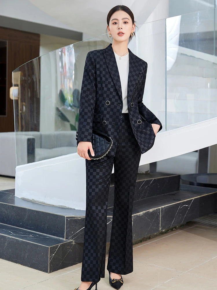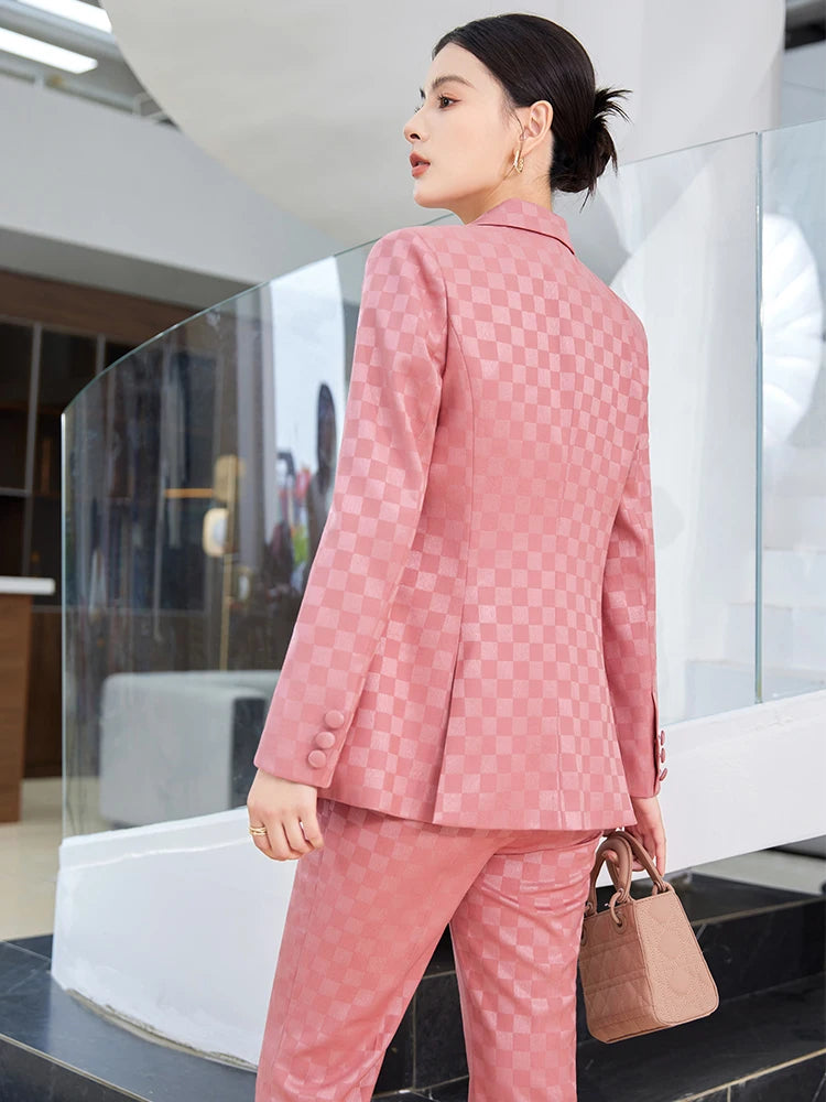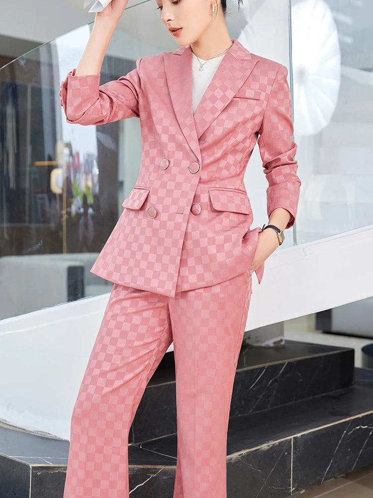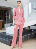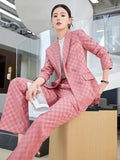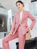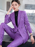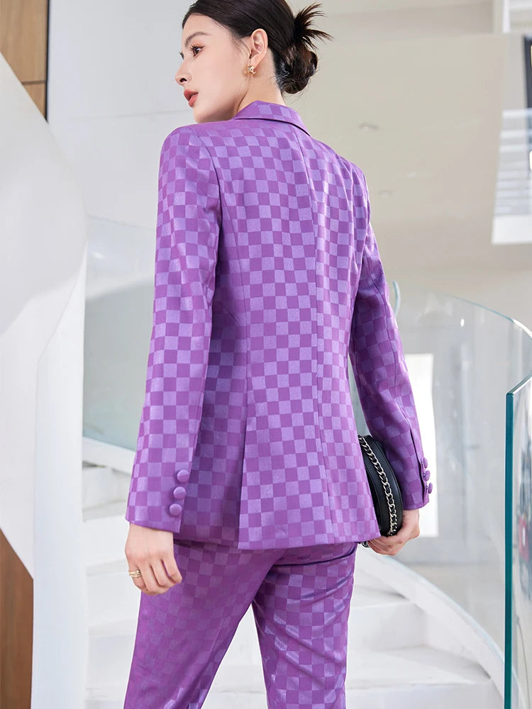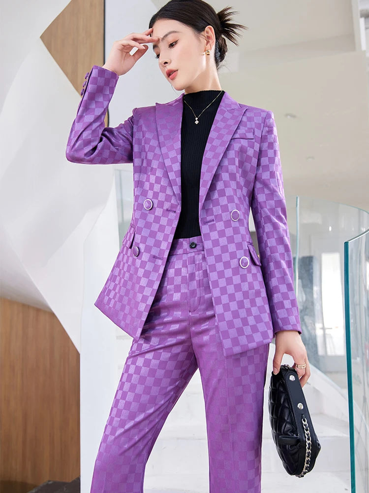 Fashion Ladies Formal Pant Suit Women Purple Pink Black Plaid Jacket and Trouser Female Business Work Wear 2 Piece Blazer Set