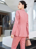 Showcase your professional style with this fashion-forward ladies' formal pant suit. This elegant two-piece set features a tailored plaid jacket in purple, pink, and black hues, paired with matching trousers for a cohesive and sophisticated look. Perfect for business meetings, office wear, or formal events, this blazer set effortlessly combines a classic silhouette with modern color accents, ensuring you look polished and confident at work or any professional occasion.