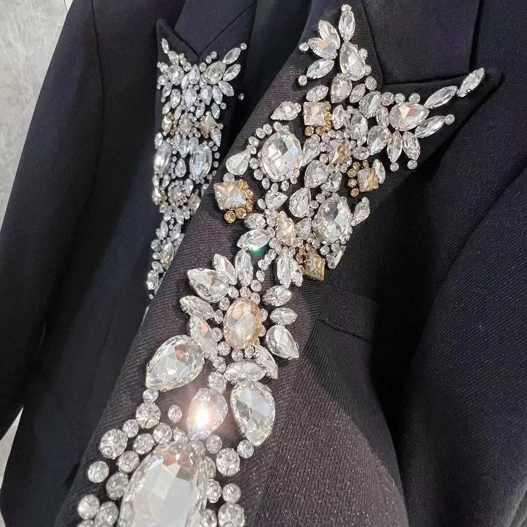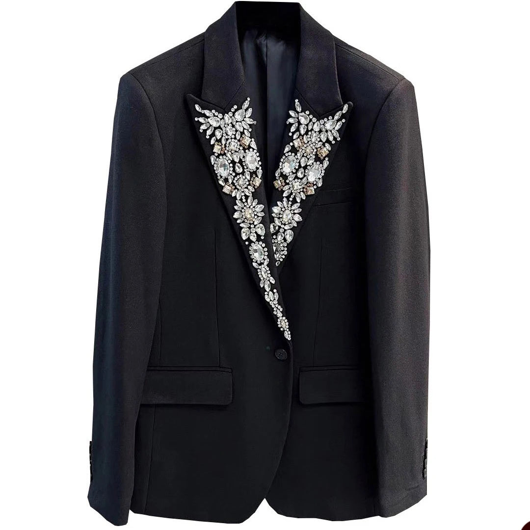 Descubra nuestros trajes de moda para hombre, con un escote joya único que los distingue. Este nuevo conjunto de dos piezas, hecho a medida, incluye un abrigo holgado y un pantalón, diseñado para la comodidad y el estilo. Perfecto para ocasiones formales, fiestas y actuaciones, este traje ofrece un look relajado y sofisticado. Personalizado para garantizar un ajuste perfecto, combina materiales de alta calidad con un diseño contemporáneo, lo que lo convierte en la opción ideal para el novio moderno. Realce su armario con este traje versátil, perfecto para cualquier evento donde quiera destacar.