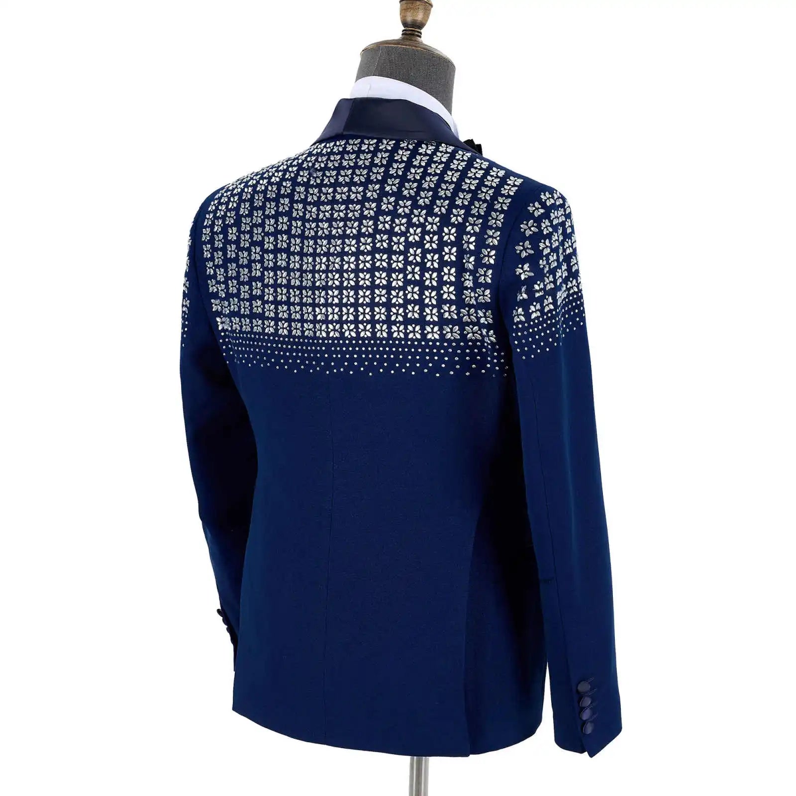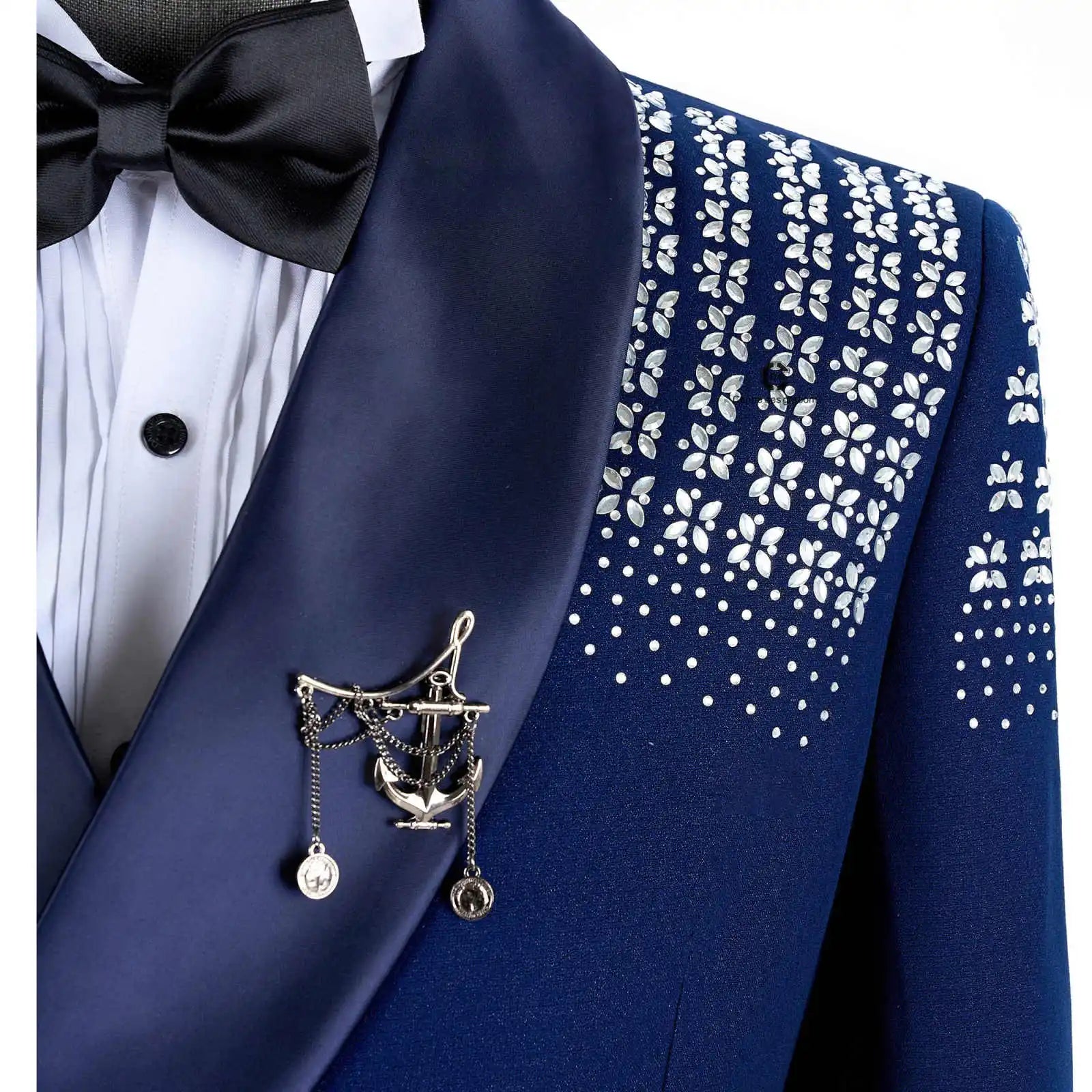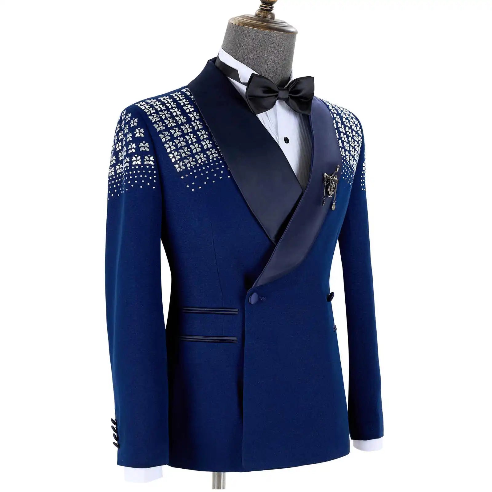 Fashion Men‘s Wedding Suits Shawl Lapel Blazer Rhinestone 2 Pieces Set Tuxedo Coat Double Breasted Customized Jacket Pants