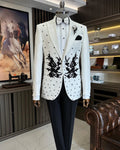 Trajes de moda para hombre, 2 piezas, apliques, blazer, pantalones, cuentas, un botón, esmoquin formal para graduación, boda, novio, talla grande, a medida