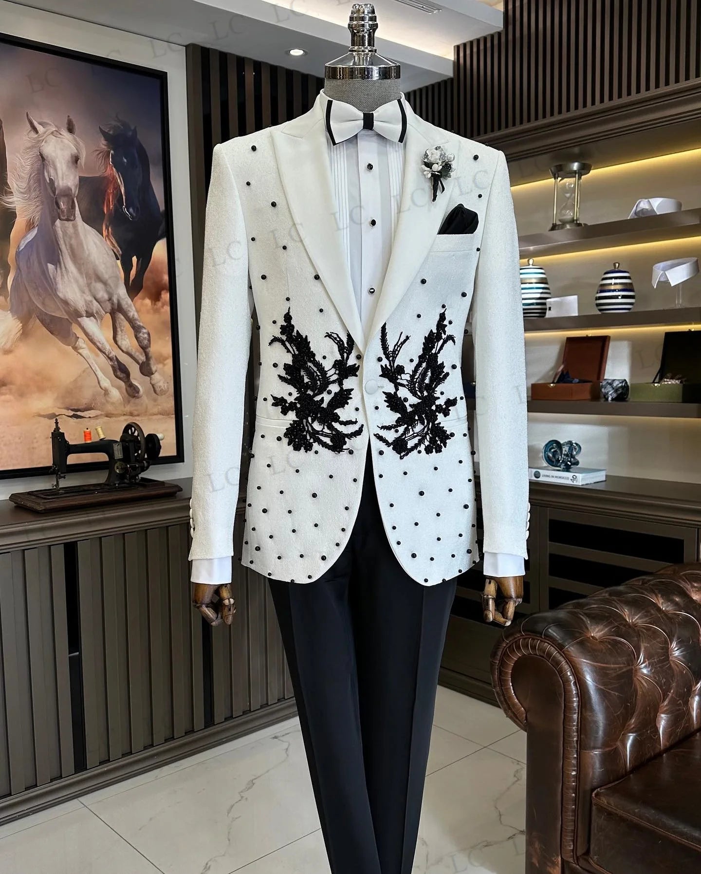 Sumérgete en la sofisticación con nuestro traje de moda para hombre, un elegante conjunto de dos piezas que incluye un blazer a medida y pantalones a juego. Este esmoquin luce elegantes apliques y cuentas, realzados por un clásico cierre de un solo botón para un look refinado. Perfecto para graduaciones, bodas y eventos formales, este traje combina un diseño contemporáneo con una elegancia atemporal. Disponible en tallas grandes y con un corte perfecto, te garantiza un aspecto impecable y seguro en tu día especial.