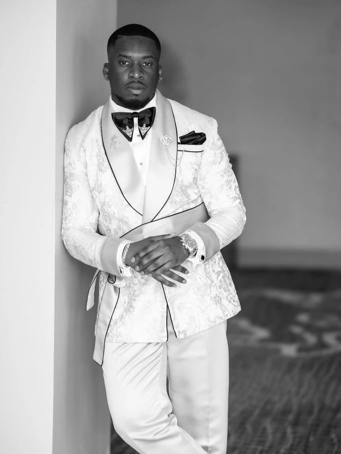 Fashion Men's Suit Jacquard Tailor-Made 2 Pieces Set Jacket Shawl Lapel Blazer Double Breasted Groom Customized Coat Pants