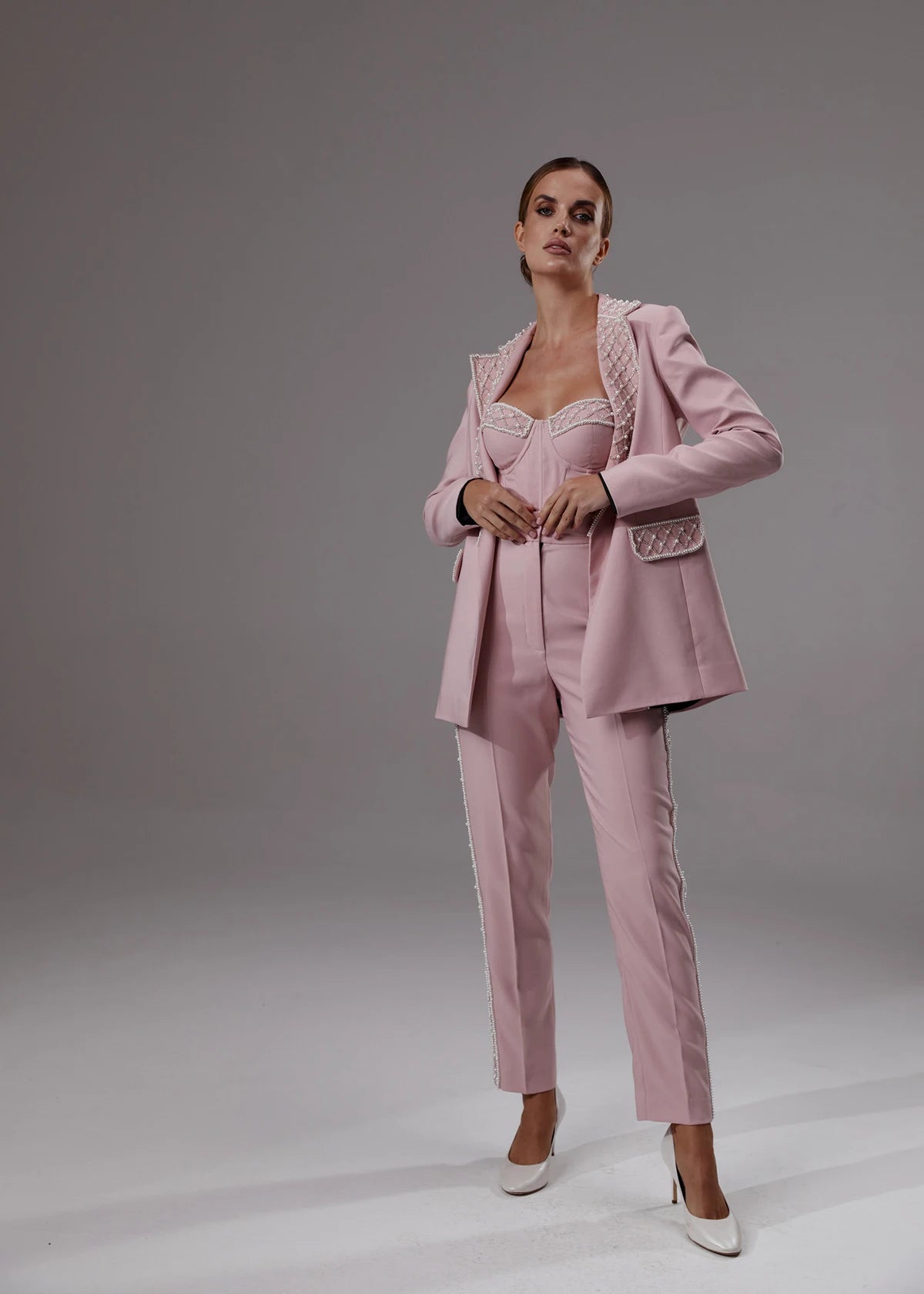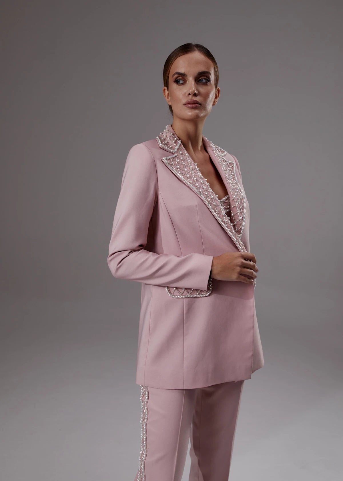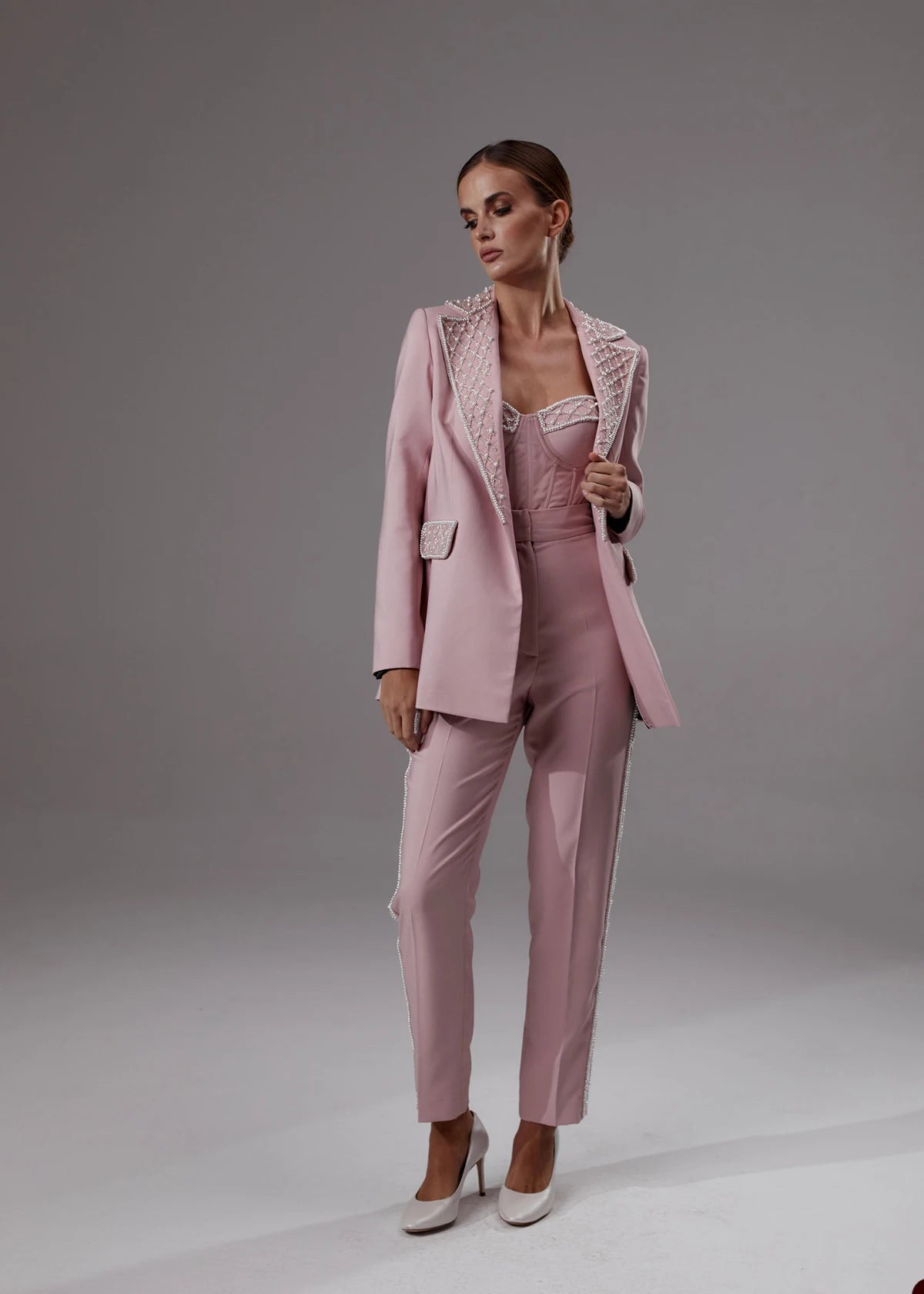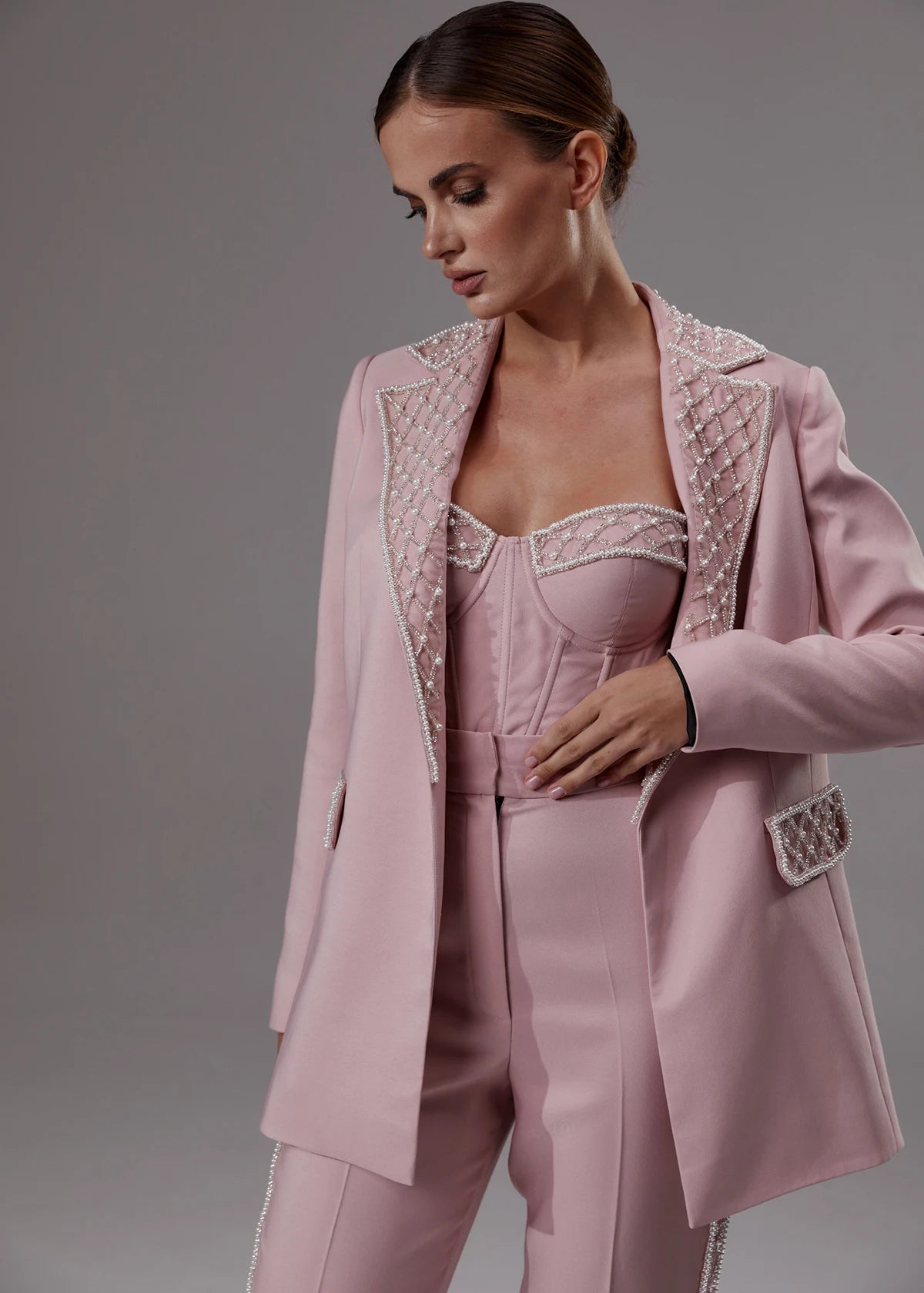 Elegante conjunto de blazer con cuentas de perlas para mujer: traje de 3 piezas a medida para fiestas, graduaciones y bodas.