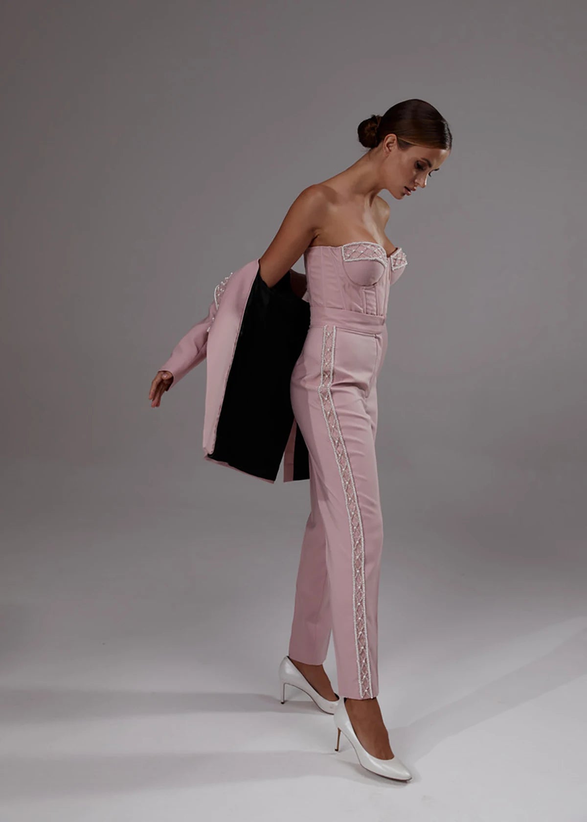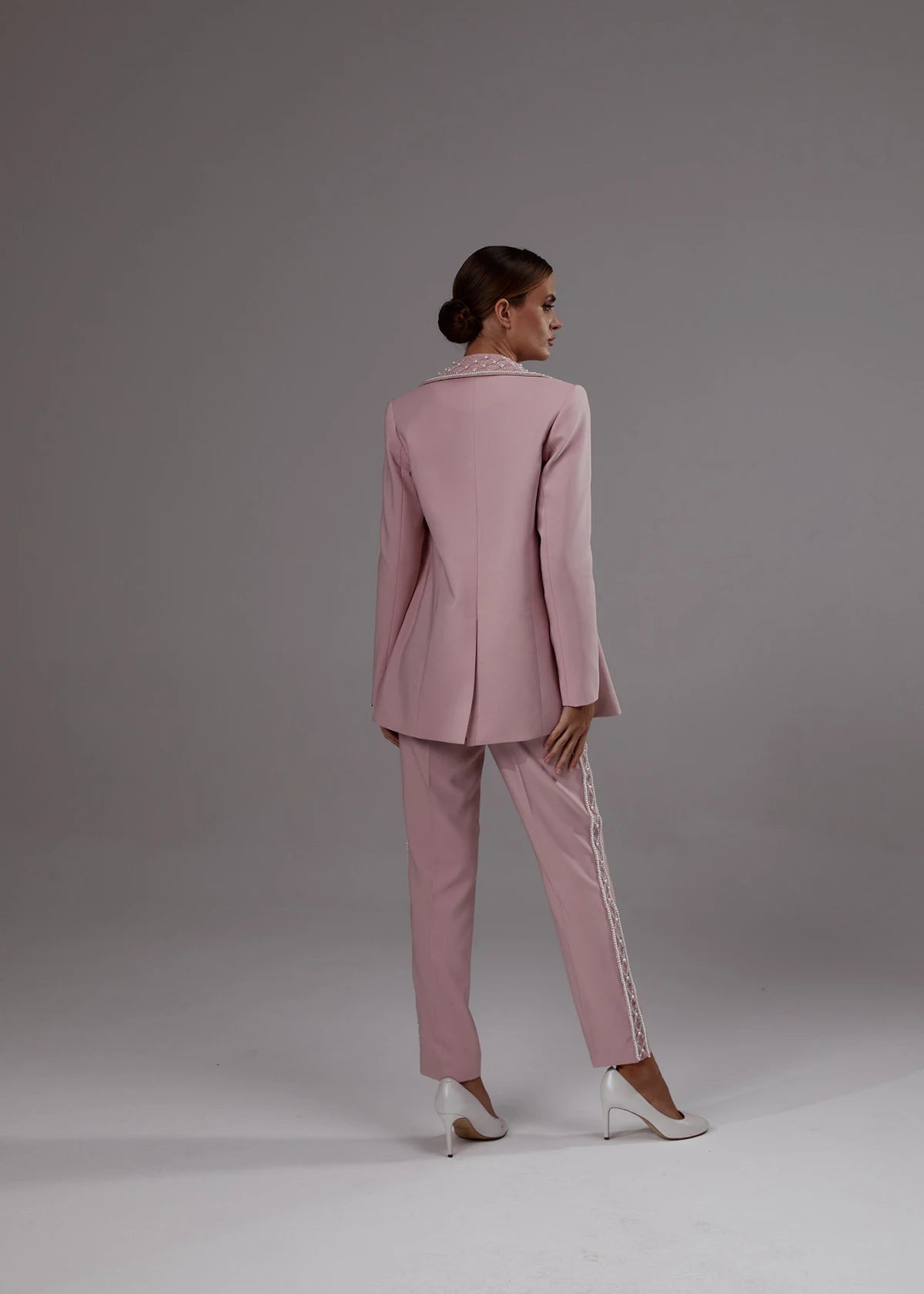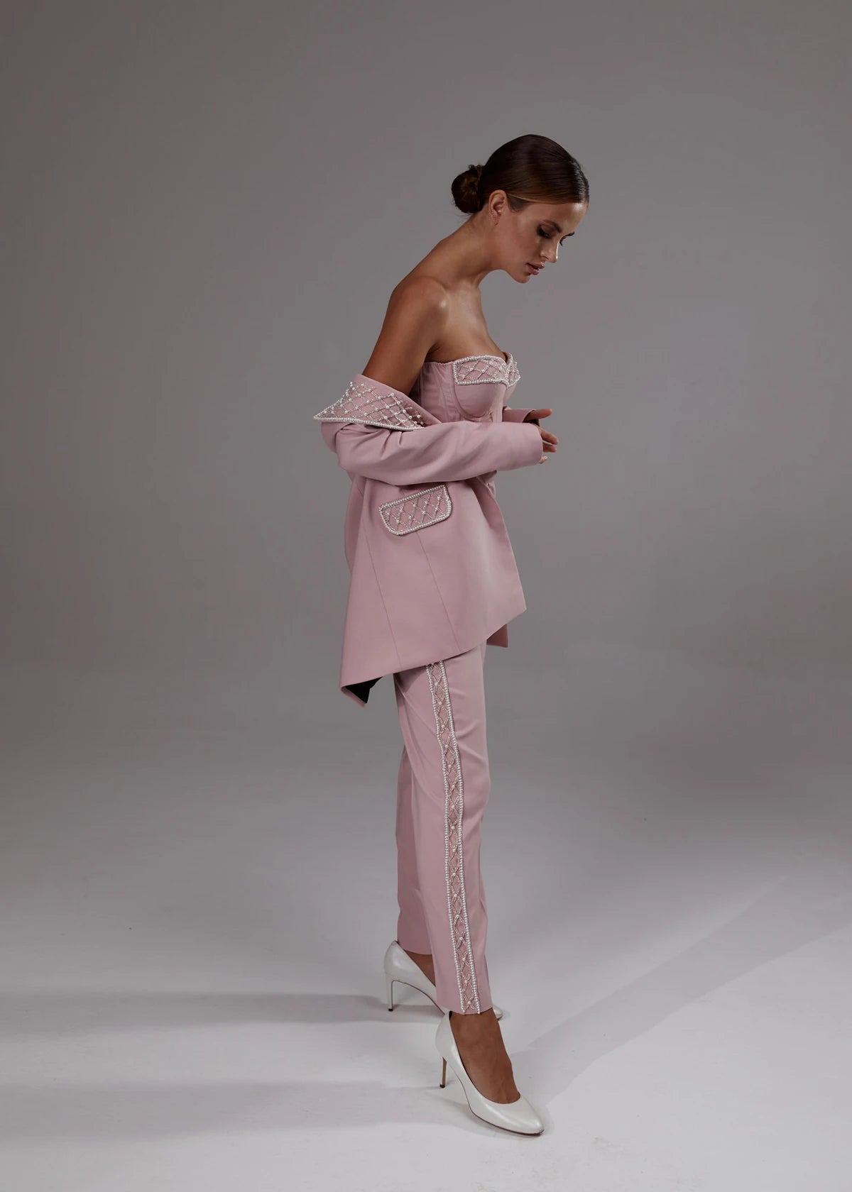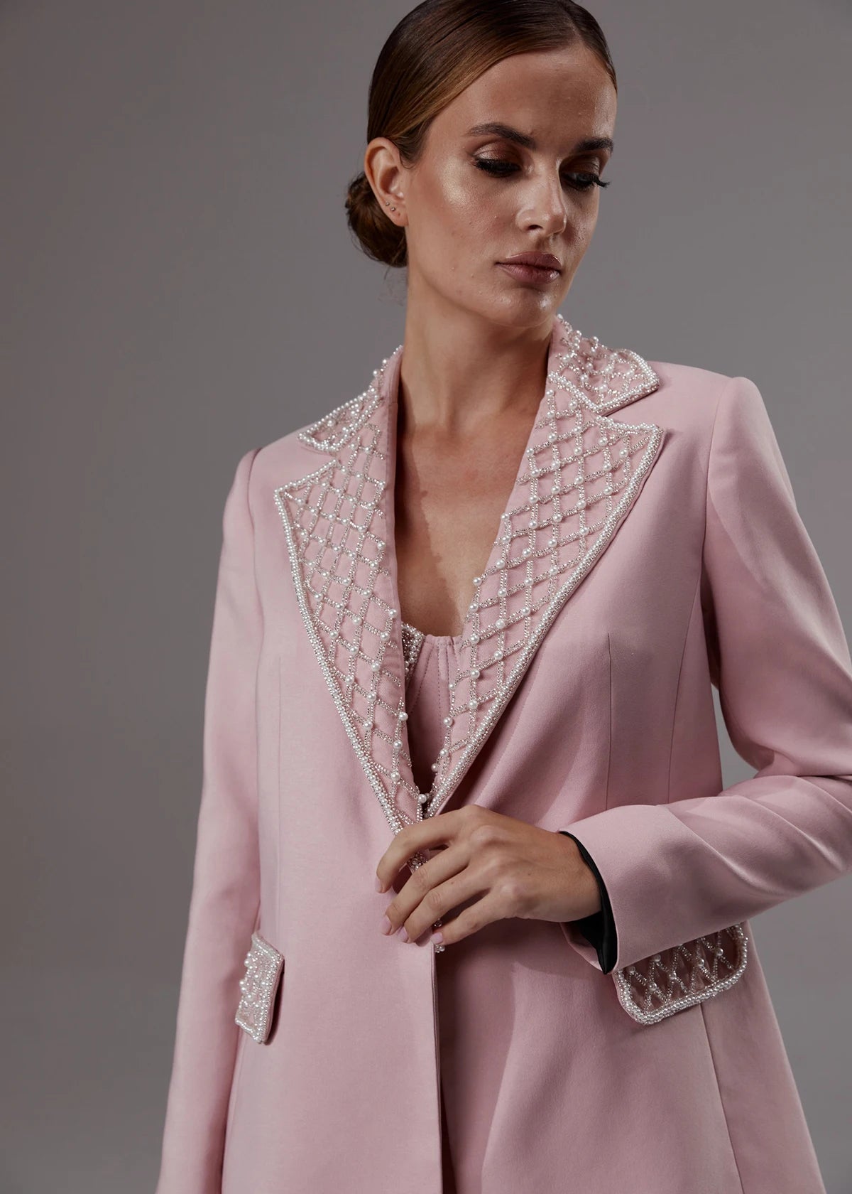 Elegante conjunto de blazer con cuentas de perlas para mujer: traje de 3 piezas a medida para fiestas, graduaciones y bodas.