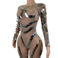 Body de moda con brillantes y diamantes de imitación para mujer, ropa de fiesta para discoteca, monos ajustados con lentejuelas, leotardos sexis con diamantes.