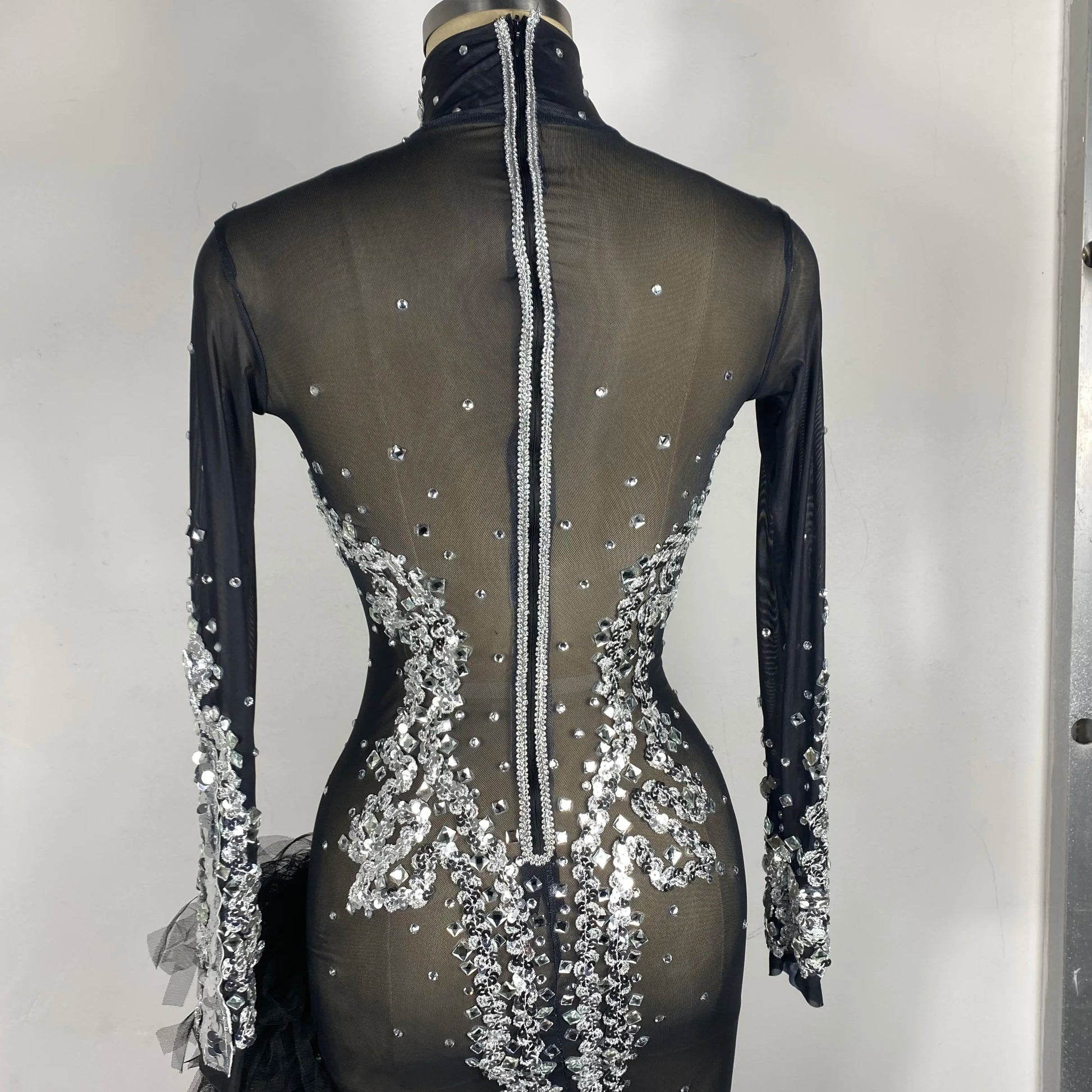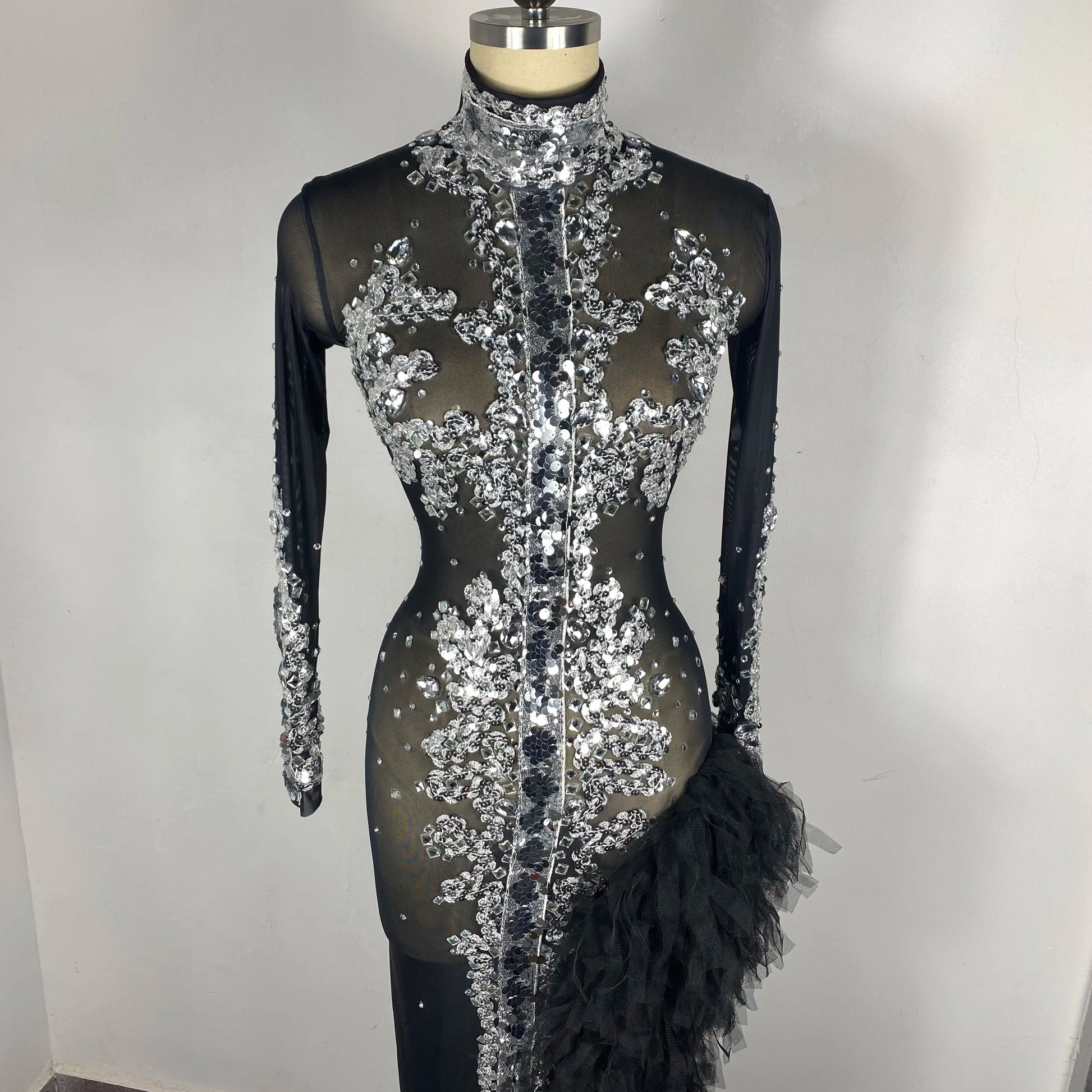 Fashion Tulle Glittering Sequin Club Dress Split Tassel Tulle Evening Dress Party Stage Performance Birthday Party Celebration