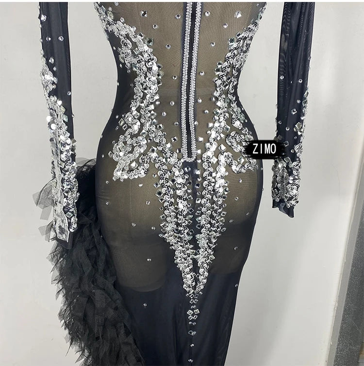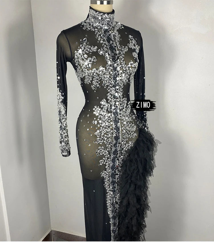 Step out in style with this fashion-forward tulle evening dress, sparkling with glittering sequins and finished with dramatic split tassel details. The airy tulle fabric creates an ethereal look, while the eye-catching sequins ensure you shine at every angle. Perfect for club nights, stage performances, birthday parties, or any special celebration, this dazzling dress guarantees you’ll be the star of the show!