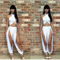 Fashion Two Pieces Set Women Clothing Bandage Sexy Crop Tops and High Waist Split Pants Sexy Clubwear Party Sets Summer