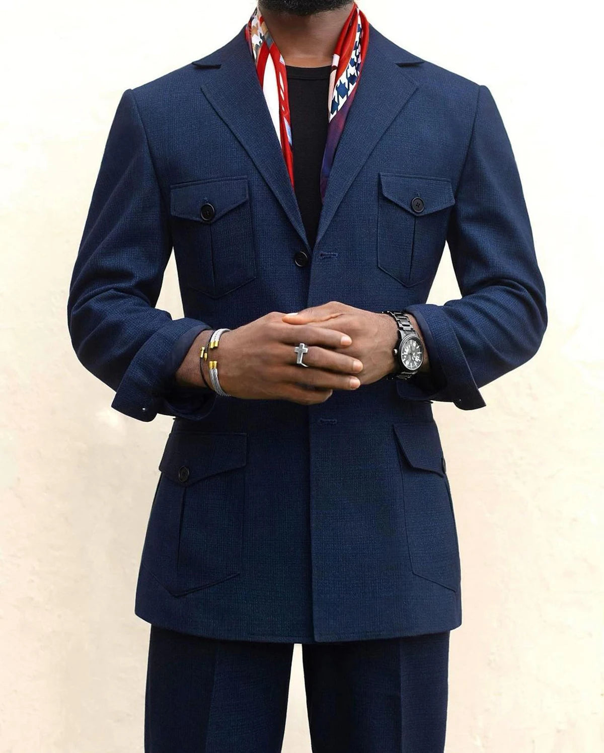 Causa una gran impresión con nuestro traje de boda utilitario de moda para hombre, diseñado para el novio moderno y versátil para ocasiones formales o de negocios. Este esmoquin de dos piezas, hecho a medida, incluye un elegante abrigo y pantalón a juego, lo que garantiza un look elegante para cualquier ocasión. Elaborado con atención al detalle, este traje combina funcionalidad y elegancia, lo que lo hace perfecto para bodas, fiestas o incluso como un atuendo destacado para artistas. Totalmente personalizable para adaptarse a tu estilo único, este traje es la opción ideal para quienes buscan combinar sofisticación y practicidad. Realza tu vestuario formal con esta excepcional pieza.