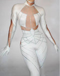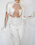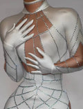 Fashion White Green Women Jumpsuit Long Sleeve Gloves Rhinestones Sexy Club Party Wear Dance Singer Stage Performance Costumes
