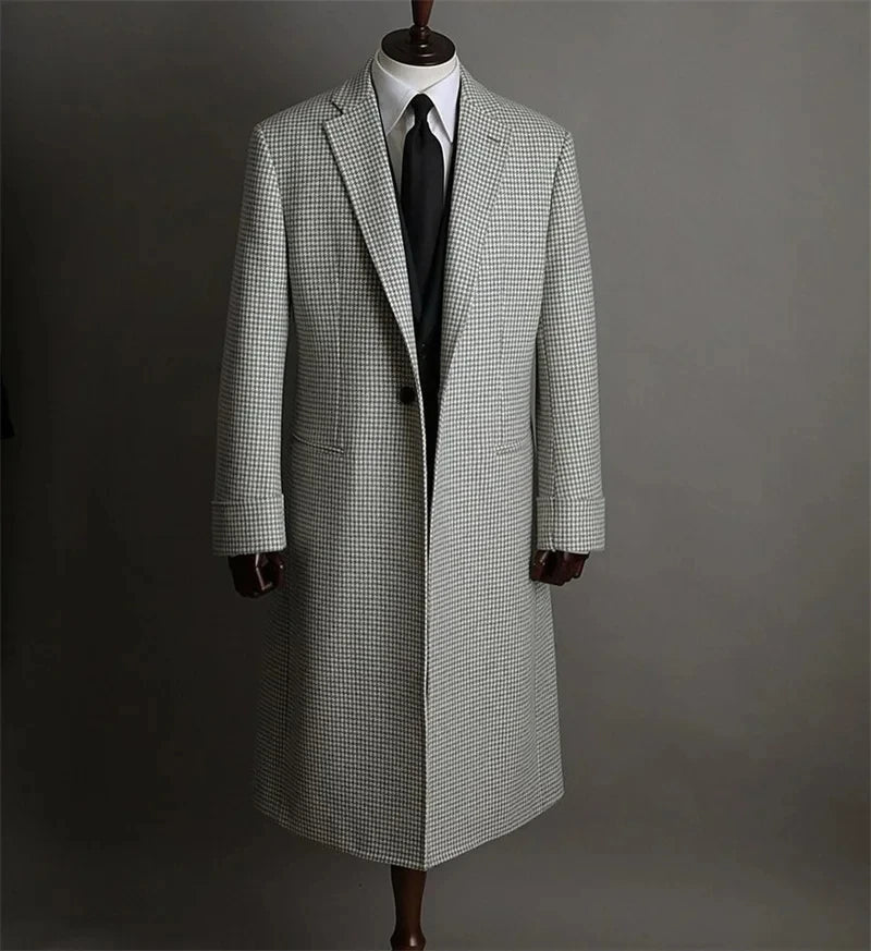 Abrigo largo de lana y algodón para hombre, traje de invierno, nuevo, con pequeño entramado, cómodo, a medida, para ocasiones formales, talla personalizada.