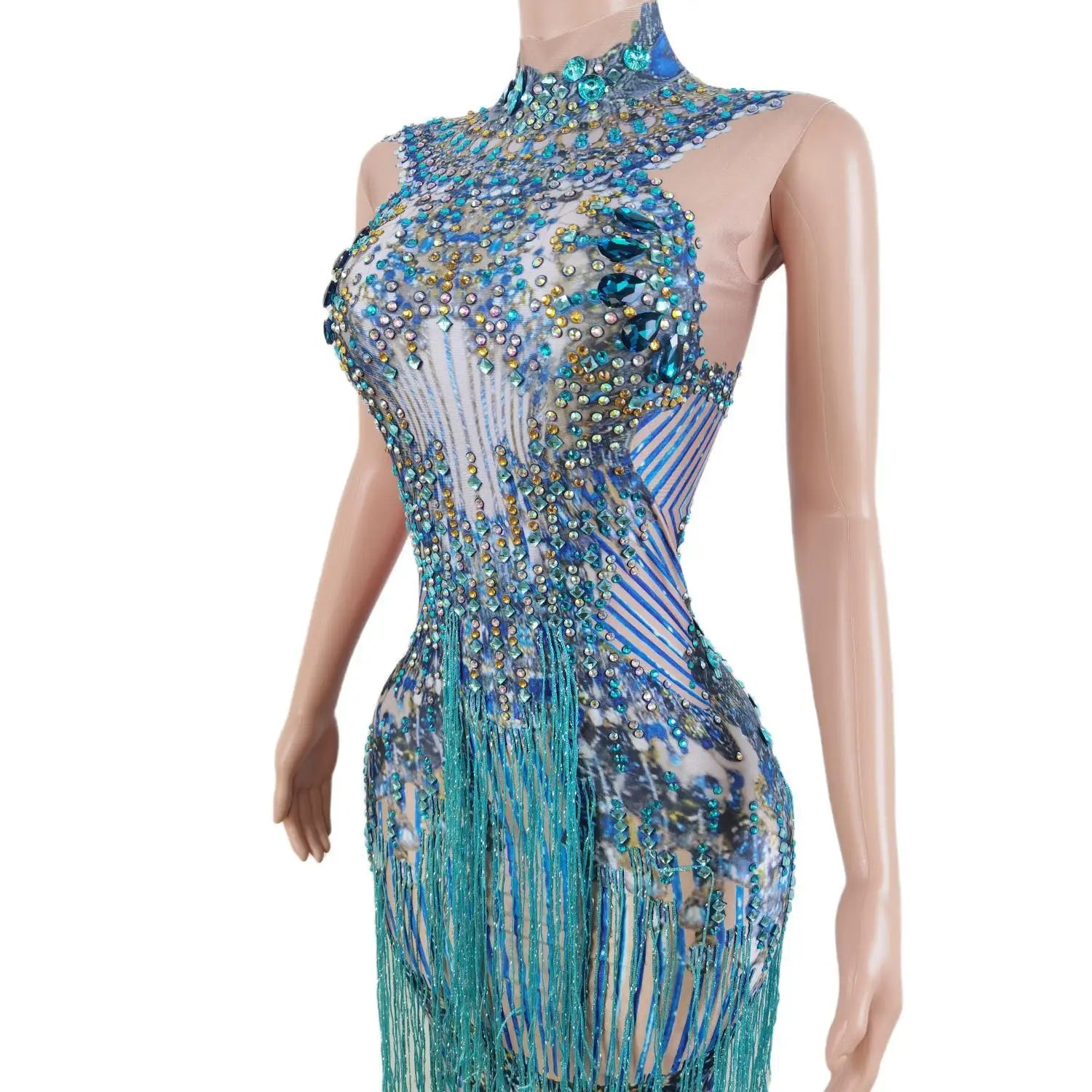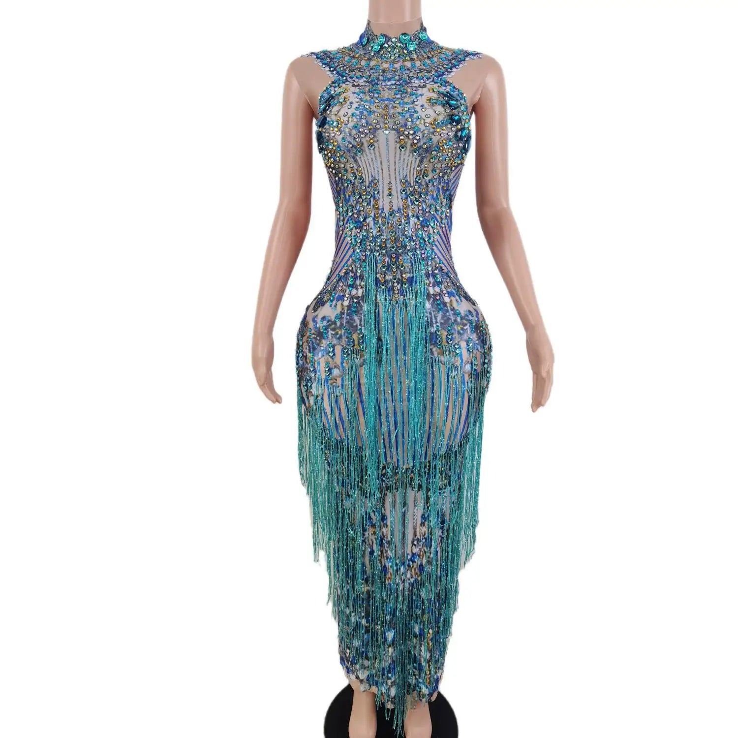 Elevate your festival, stage, or party look with the Festival Glisten Rhinestones Long Dress — a showstopping long dress designed to glisten under lights. Perfect for singers, performers, ravers, and celebrants, this piece blends dense rhinestone embellishment with flowing fringes and tassels for dramatic motion and maximum sparkle.