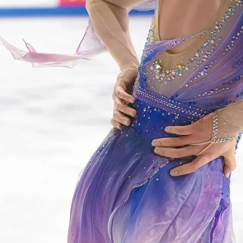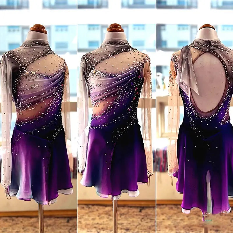 Figure Skating Performance Dress, Children's Adult Competition Grading Dress, Kosten Diamond Studded Gradient