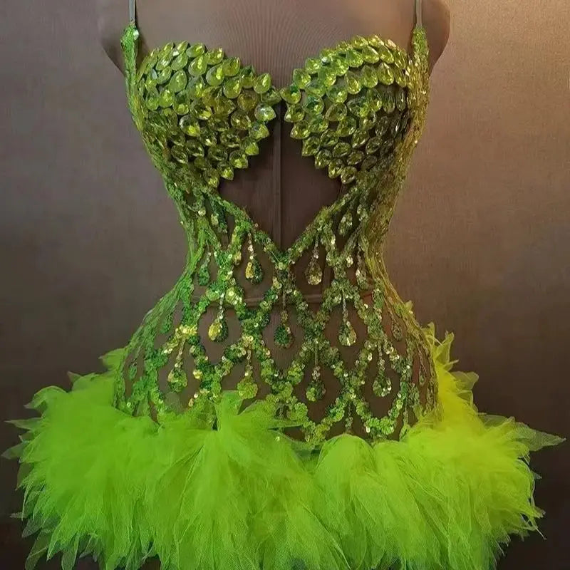 Make a bold statement with this Fluorescent Yellow Rhinestone Mesh Tube Top Evening Dress. Featuring brilliant rhinestone embellishments on a sheer mesh body, this eye-catching dress is designed to stand out at any special occasion. The tube top silhouette flatters your figure, while the vivid fluorescent yellow hue adds a modern, energetic twist. Perfect for galas, elegant women’s parties, birthdays, or show-stopping evening events, this sexy costume ensures you shine with confidence and glamour all night long.