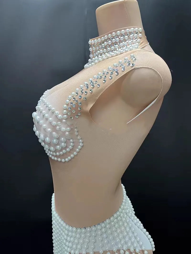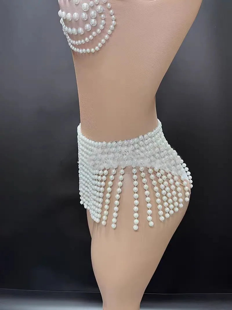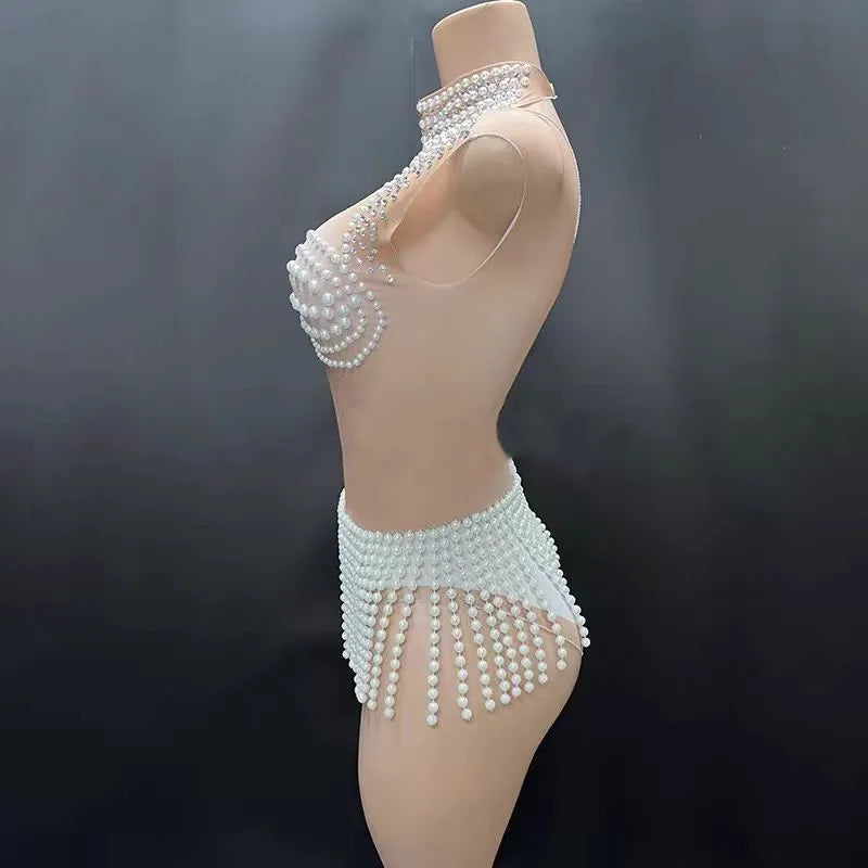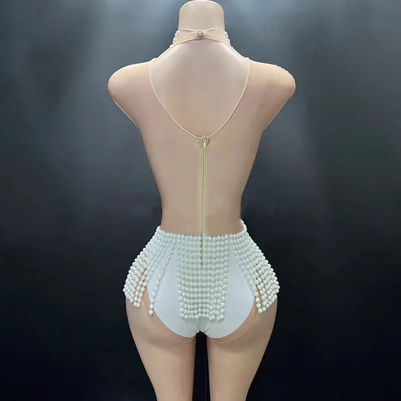 French Romantic Pearl Jumpsuit, Beach Resort, Hot Spring Swimsuit, Acrobatics Performance Suit, Girl Group Singing Suit