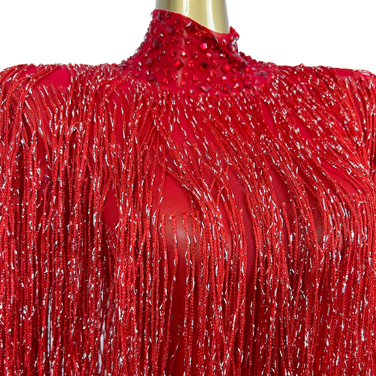 Elevate your performance wardrobe with a Full Tassel Dress designed for maximum movement, shine, and stage impact. This long-sleeve, stretch fringe dress blends fluid tassels with a figure-flattering silhouette to create dramatic motion on every turn — ideal for singers, dancers, entertainers, and anyone wanting a high-energy party or performance look.