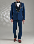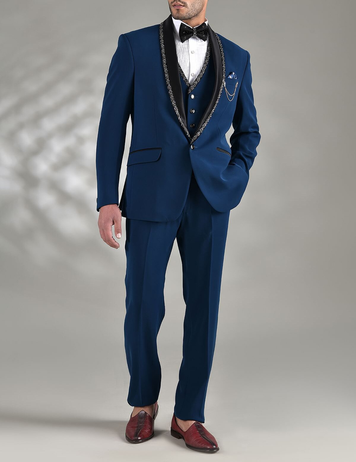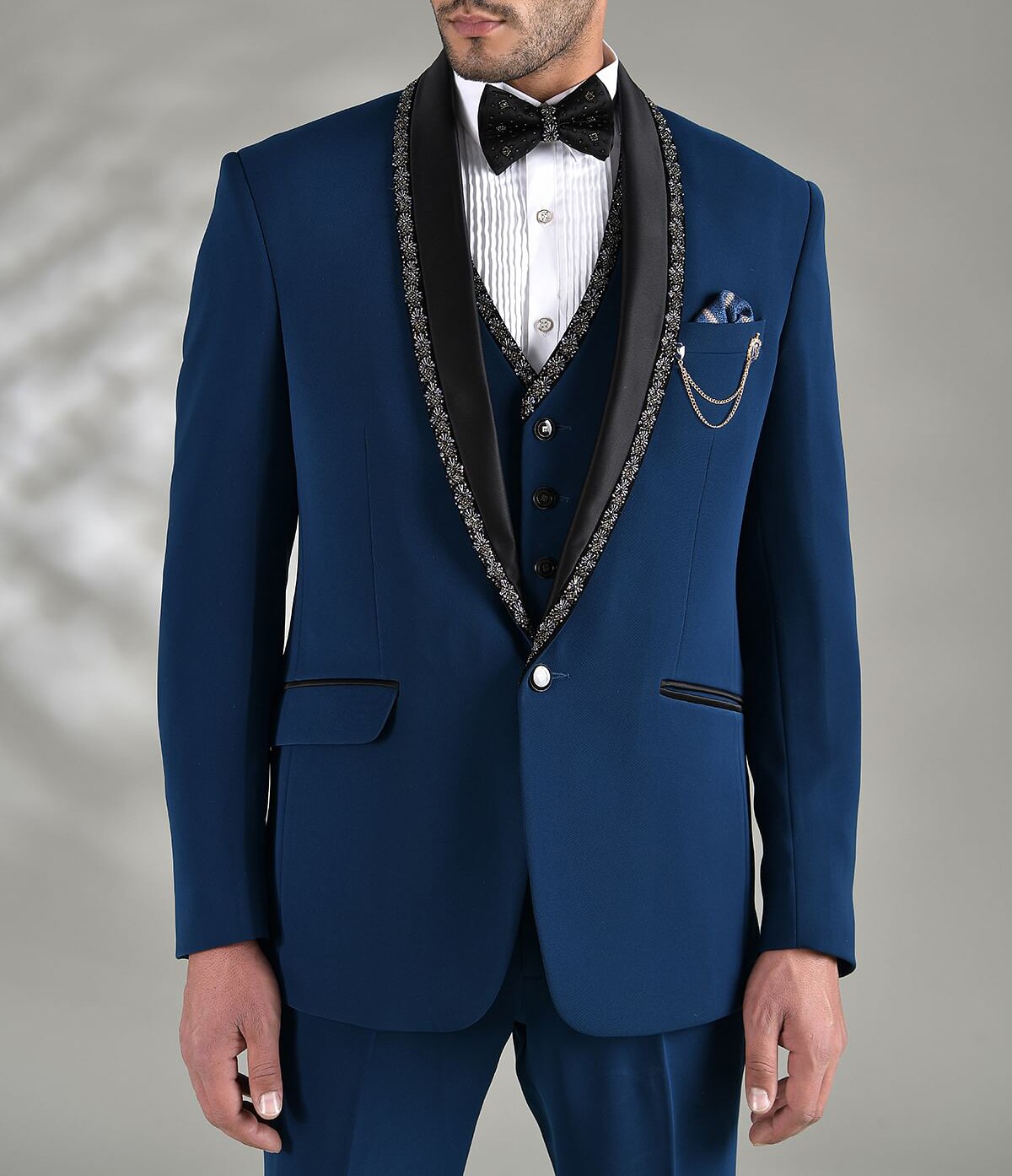 Trajes de boda azules para caballero con cuello de cuentas, a medida, para novios, 3 piezas, para ocasiones formales, fiestas, cantantes.
