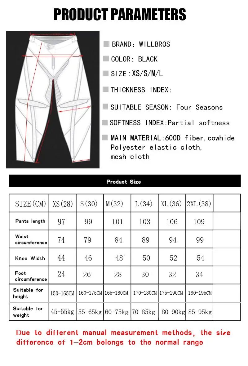 *Parches de goma protectores para mayor protección en caso de choque. *Perneras cónicas para evitar que las botas se arruguen.