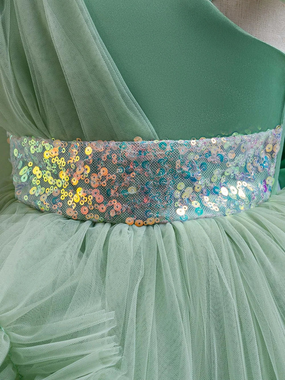 Deja que tu pequeña brille con este vestido de un solo hombro de inspiración retro, perfecto para niñas de 0 a 6 años. Con encantadores detalles de encaje con volantes, suaves capas de tul y un precioso lazo, este vestido de princesa es ideal para bodas, fiestas y ocasiones especiales. El elegante diseño de cola le da un toque de fantasía, convirtiéndolo en una hermosa opción para niñas de las flores o cualquier evento memorable. Diseñado para la comodidad y el estilo, garantiza que tu bebé se vea y se sienta como una verdadera princesa.