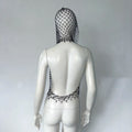 Dazzle at your next event with this glitter rhinestone mesh hooded tank top for women. Designed for summer, this sexy, see-through crop top features a bold hollow-out and backless style, enhanced by sparkling rhinestones and a unique hooded design. Perfect for raves, parties, or club nights, this camisole adds edgy glamour and confident allure to any outfit, ensuring you stand out in the crowd.