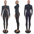 Mesh Patchwork Cut Out High Wais Long Sleeve Skinny Stretch Sexy Jumpsuit Hollow Out Night Club Women Overalls