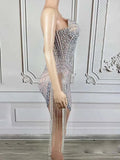 Vestido sexy sin tirantes con borlas de diamantes y cuentas de alta calidad, nueva moda, ropa personalizada para mujer