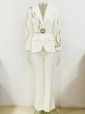 Fashion Designer Runway Suit Set Women's Colorful Diamonds Belted Blazer Flare Pants Suit 2pcs