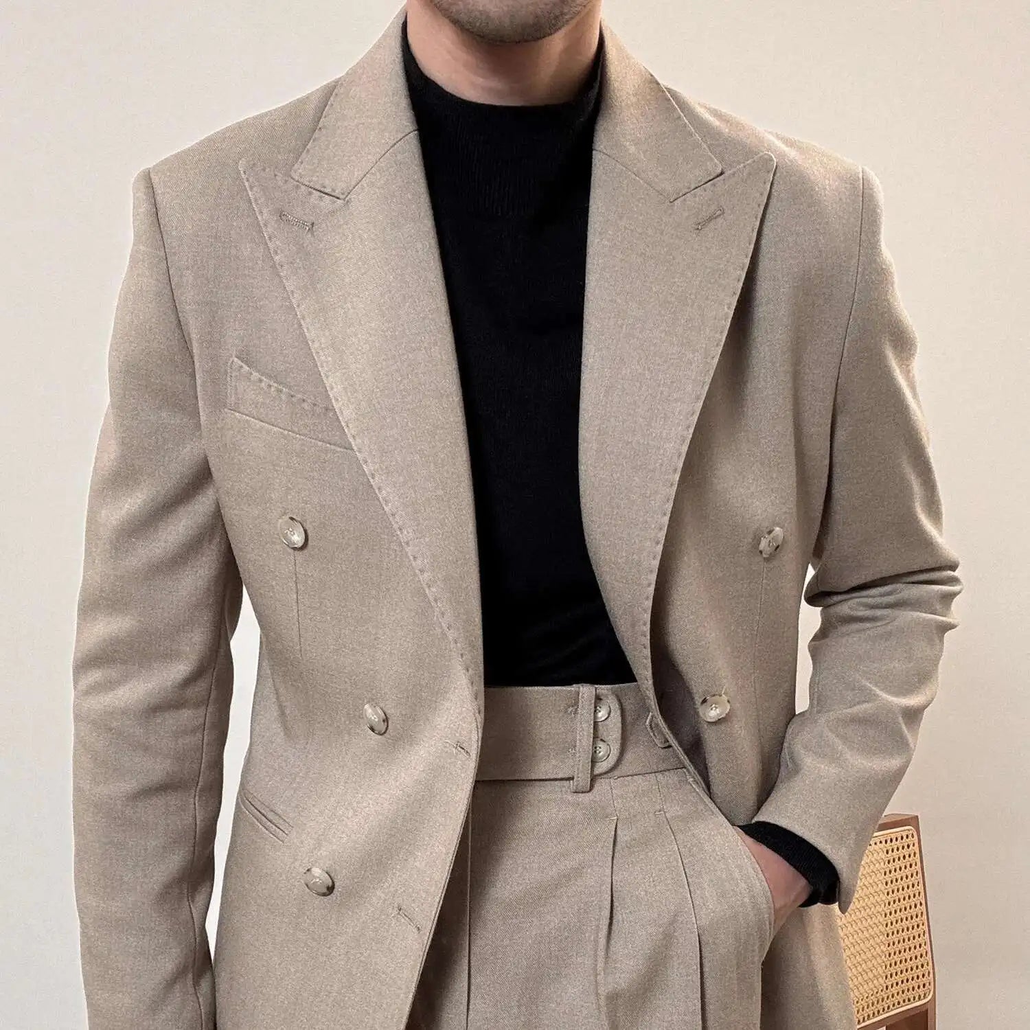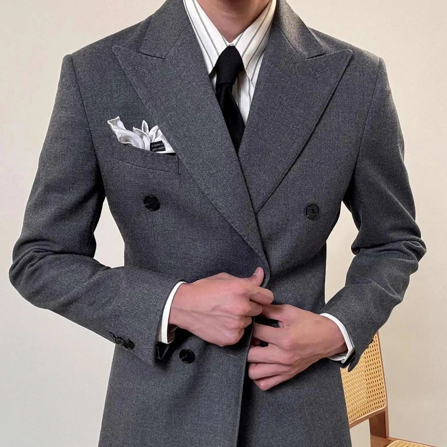 Italian Style Double Breasted Blazer Men Lapel Collar Casual Business Autumn Jacket Men Blazer Masculino Slim Fit Blazer Hombre