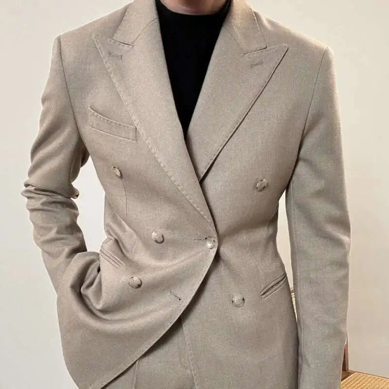 Introduce a refined wardrobe staple that channels Italian tailoring and contemporary versatility: the Italian Style Double Breasted Blazer Men. Designed for men who want a blazer that moves effortlessly from business to casual occasions, this piece combines classic double-breasted structure with a modern slim fit and thoughtful details for autumn wear.