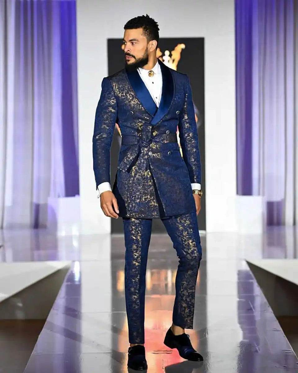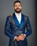 Jacquard Floral Wedding Suits for Groom Shawl Lapel Double Breasted Tuxedos 2 Pcs Jacket Pants Evening Party Prom Customized