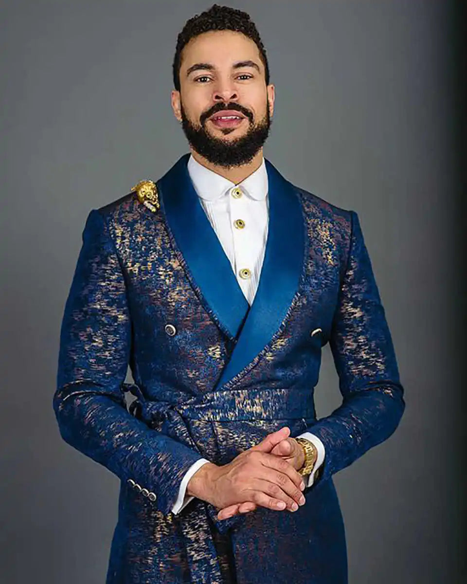Make a statement with refined texture and romantic detailing in this Jacquard Floral Wedding Suit — a double‑breasted, shawl‑lapel tuxedo crafted for grooms and individuals who want a luxurious, photo‑ready look for weddings, evening parties, or proms. The jacquard weave gives a rich, dimensional floral pattern woven into the fabric (not printed), offering depth, durability, and an elevated appearance under event lighting.