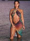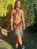 Turn heads at any event with this panelled halter cross maxi dress for women. Featuring a sexy mesh design with thin, hollow details, this sleeveless sheath dress offers elegant pleats and a daring split for added allure. Perfect for parties or trendy gatherings, this dress combines modern style with flattering contours, making it a must-have for the fashion-forward woman.