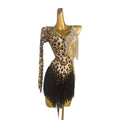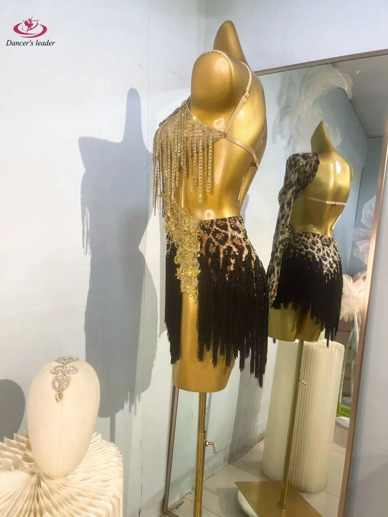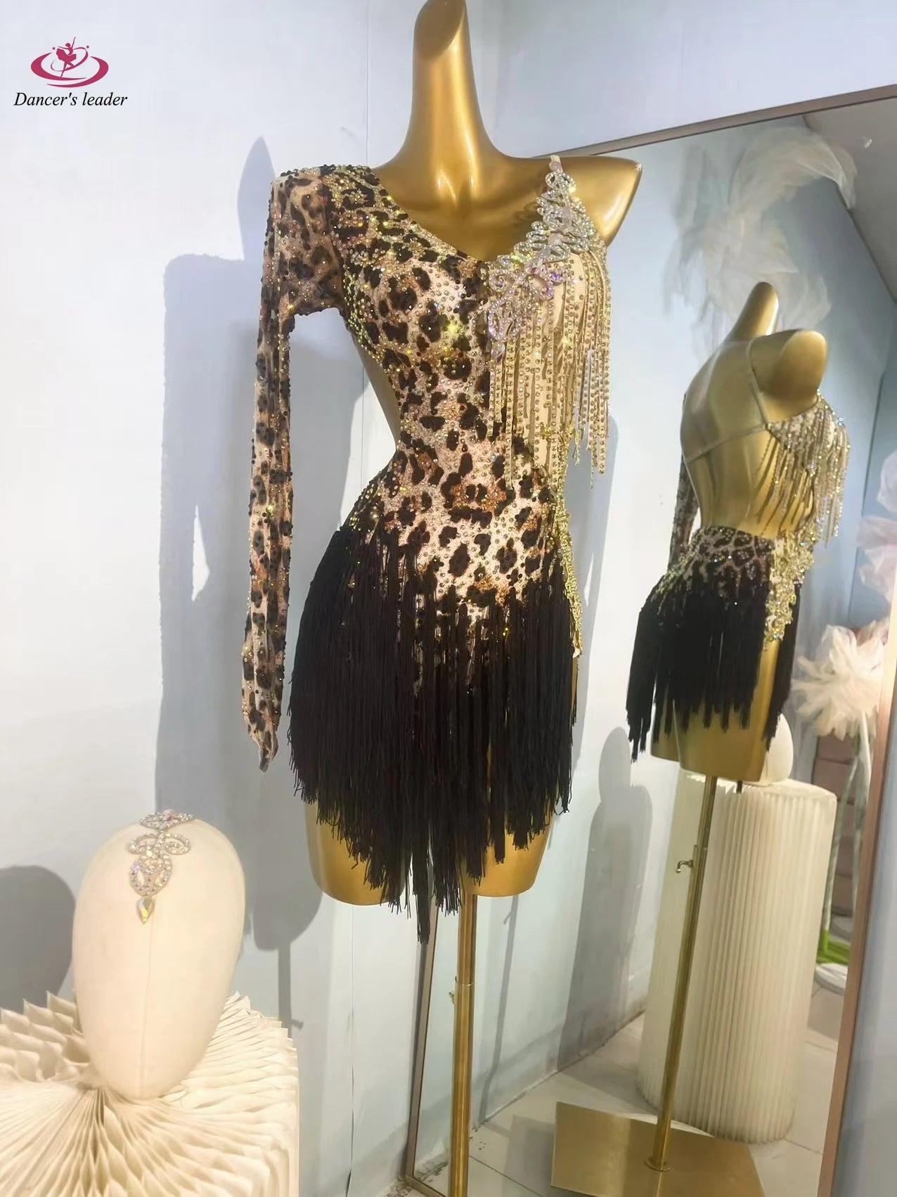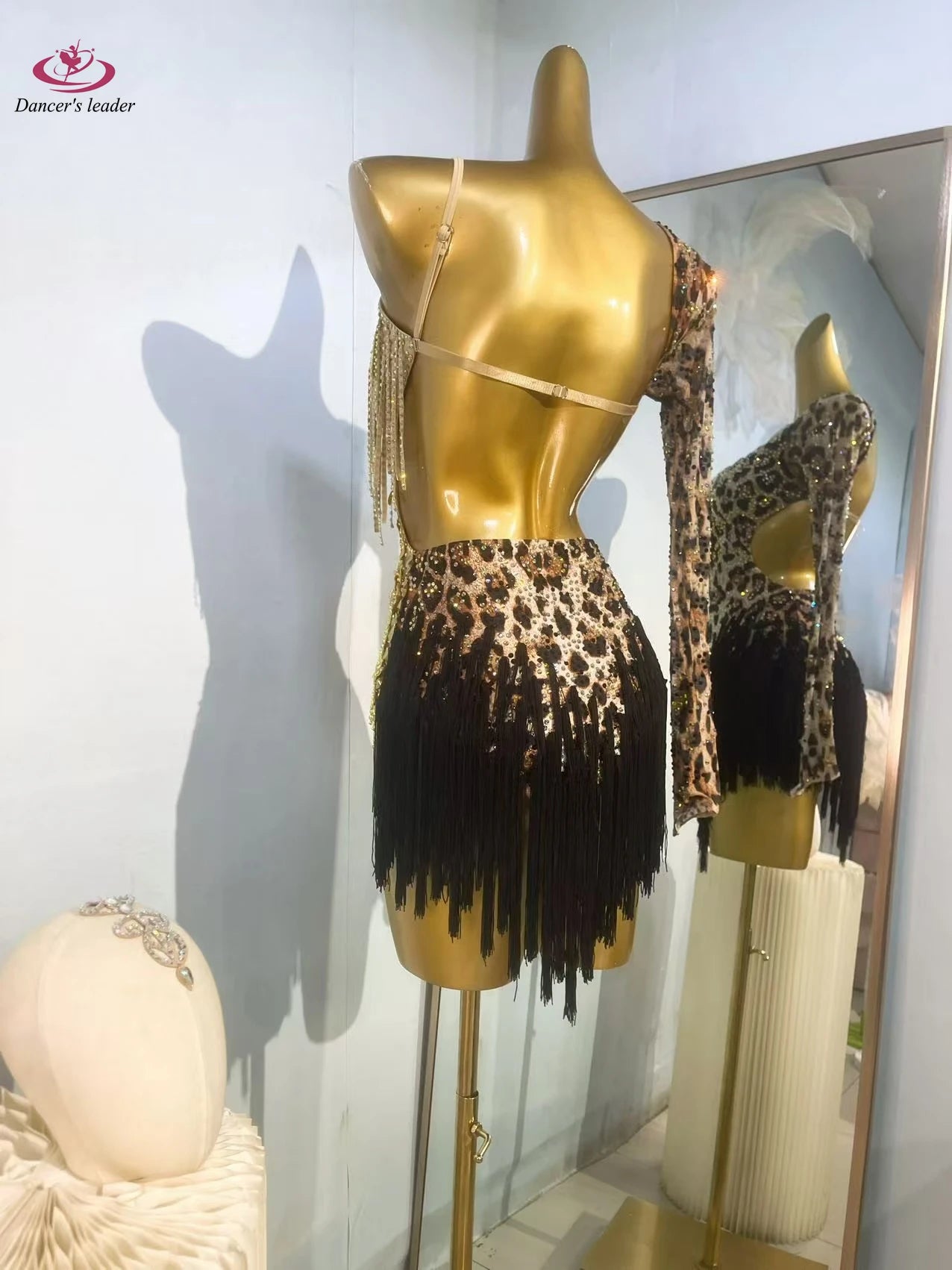 Latin Dance Dress High-end Custom Slim Fit Leopard Print Black Tassel Skirt Samba Tango Women's Adult Stage Costume