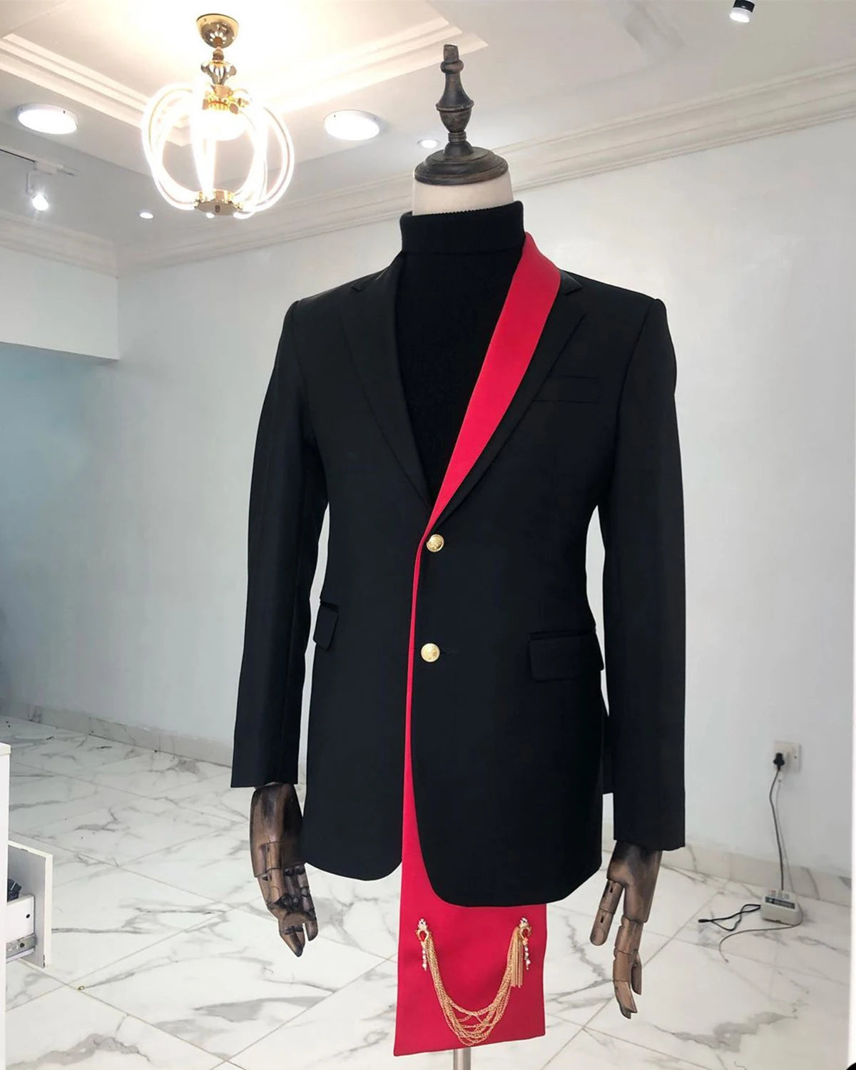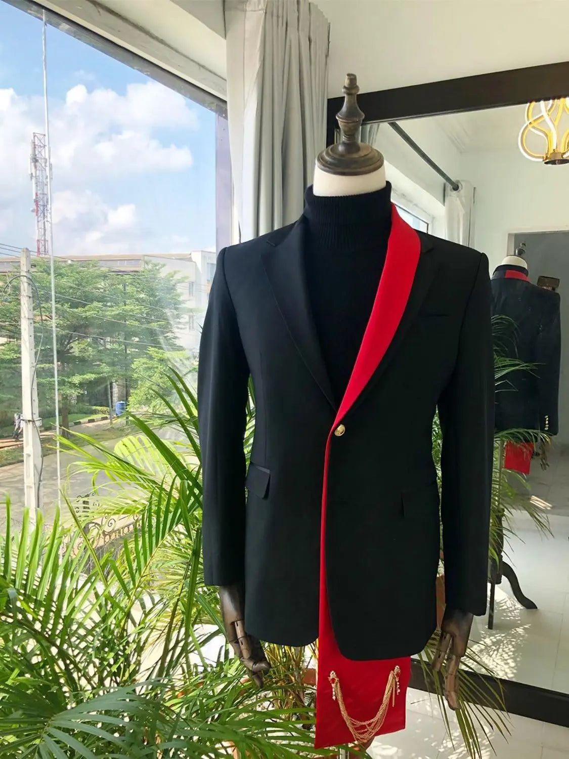 Make a bold, modern statement with this Leisure Men’s Wedding Tuxedo Blazer — a single tailored piece designed for grooms and gentlemen who want a smart‑casual look that works for weddings, evening parties, and business events. This custom‑made blazer features a classic notched lapel, clean single‑breasted silhouette, and a striking black‑and‑red palette for a sharp, memorable appearance.