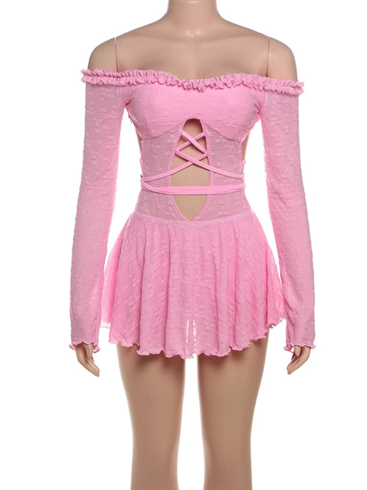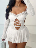 Hollow Lace Backless Dress Slash Neck Sexy Summer Trend Women Thin Bandage Birthday Party Stretch Jacquard Bodycon
